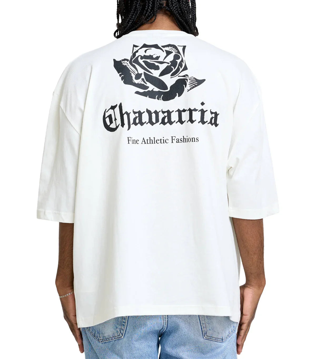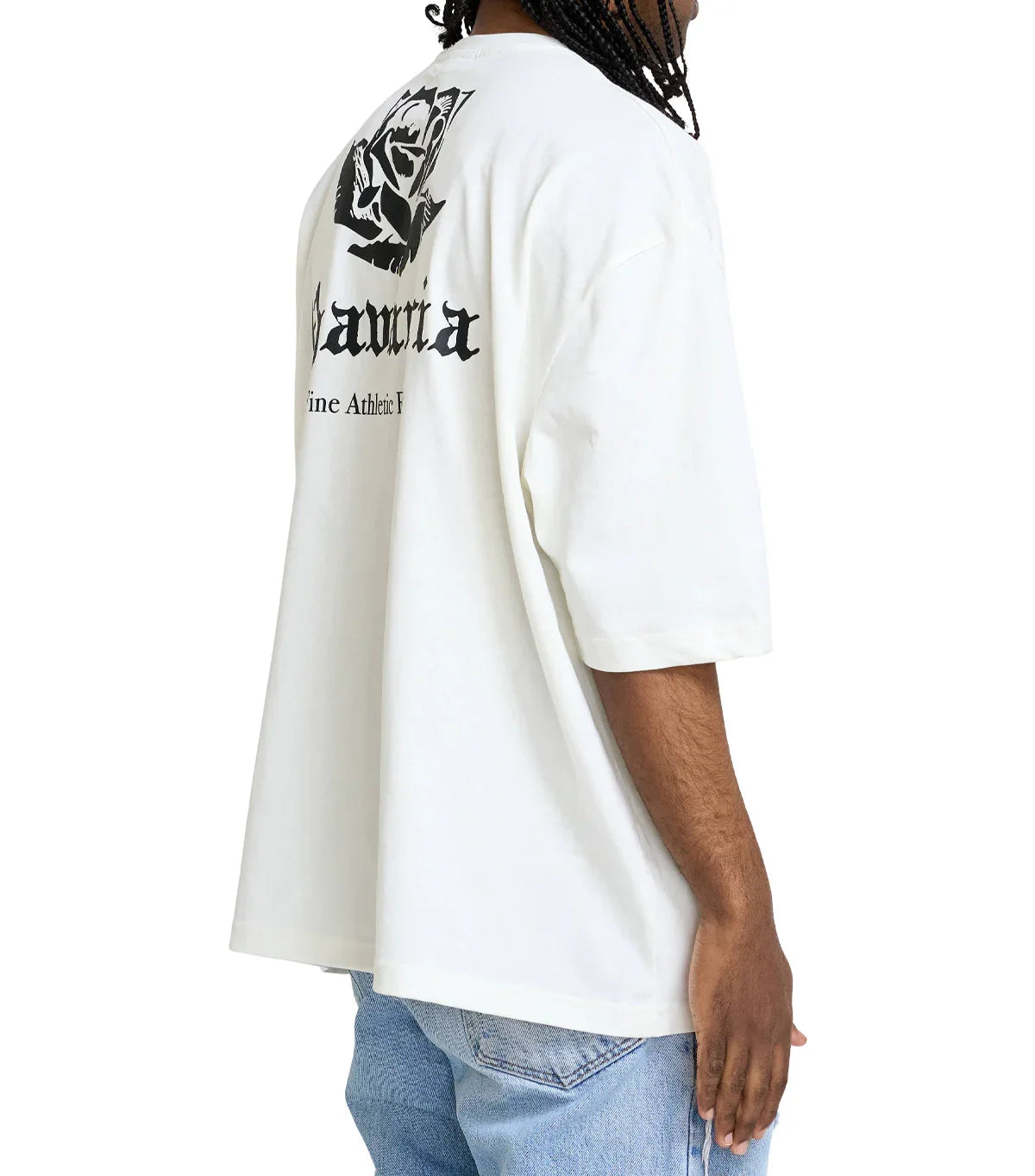 Oversized fitting cotton t-shirt. Features a small graphic printed on the chest and a large graphic on the back.