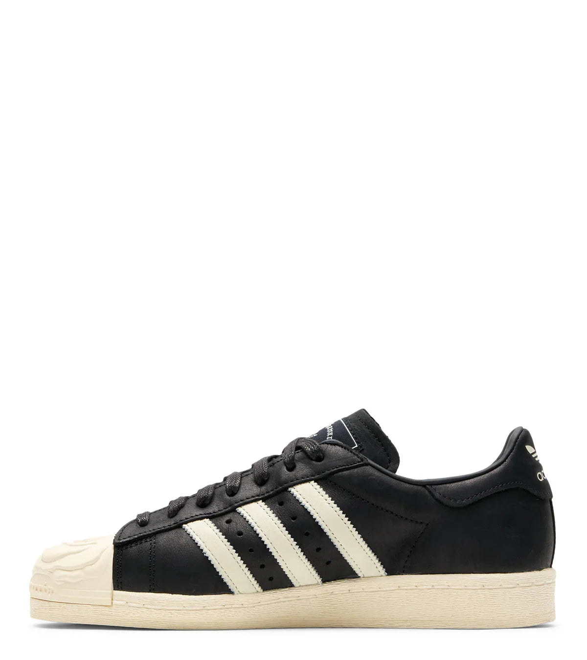 Reimagining the classic Superstar silhouette, this special pair features a soft all over black leather upper overlay, the classic 3 stripe design on the side, and finished with a unique rose indented shell design on the front.