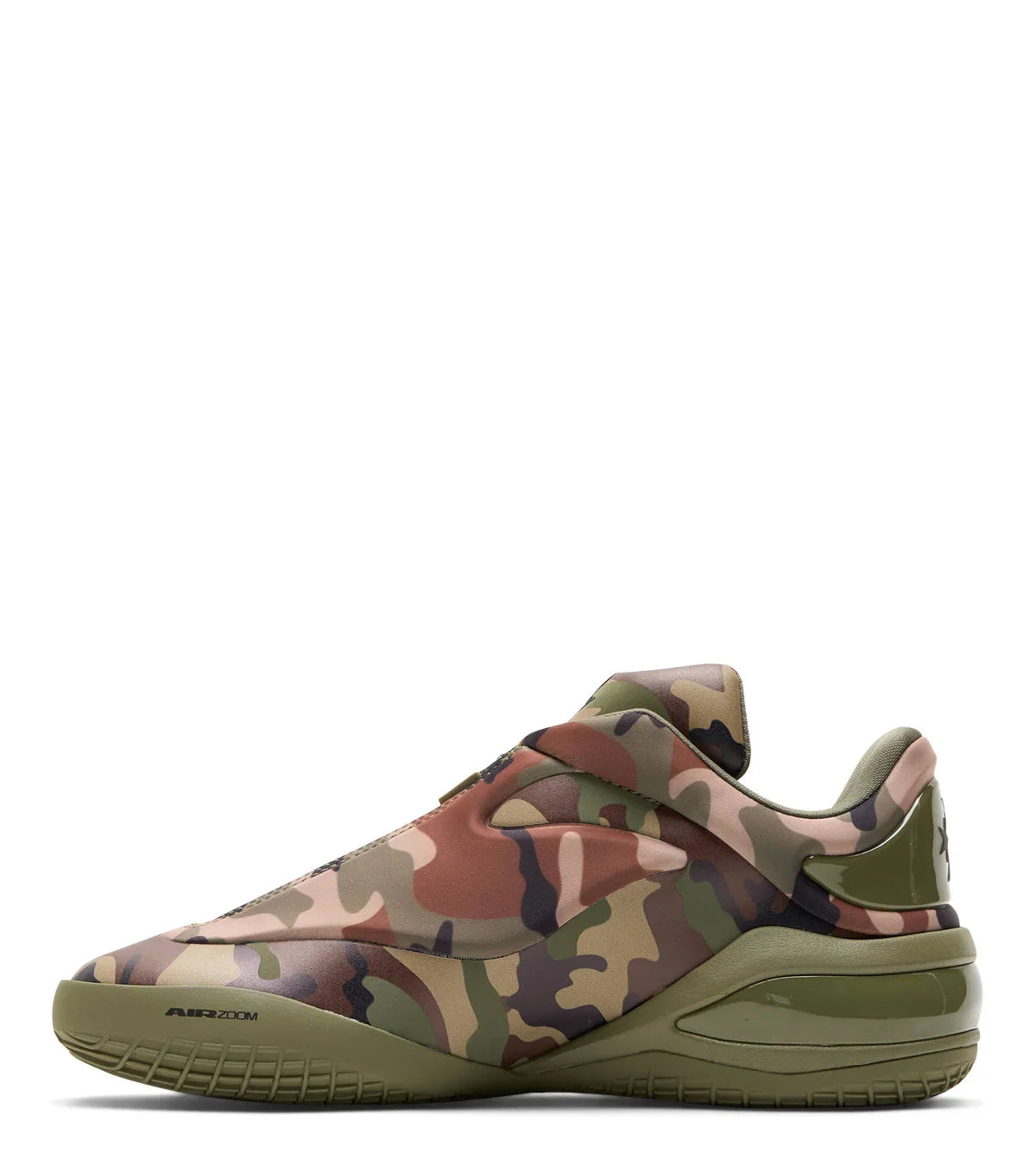 The first signature silhouette from NBA MVP Shai Gilgeous-Alexander. Blending comfort, durability, and style in one, this Camo colored silhouette features a unique puffed and molded upper in a soft rubber and padded fabric, a padded tongue with Shai's signature logo, a zipper shroud front to hide the laces, and finished with a Nike Air Zoom unit at the forefront for the utmost bouncy response.