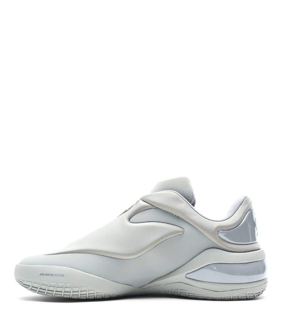 The first signature silhouette from NBA MVP Shai Gilgeous-Alexander. Blending comfort, durability, and style in one, this Gray colored silhouette features a unique puffed and molded upper in a soft rubber and padded fabric, a padded tongue with Shai's signature logo, a zipper shroud front to hide the laces, and finished with a Nike Air Zoom unit at the forefront for the utmost bouncy response.