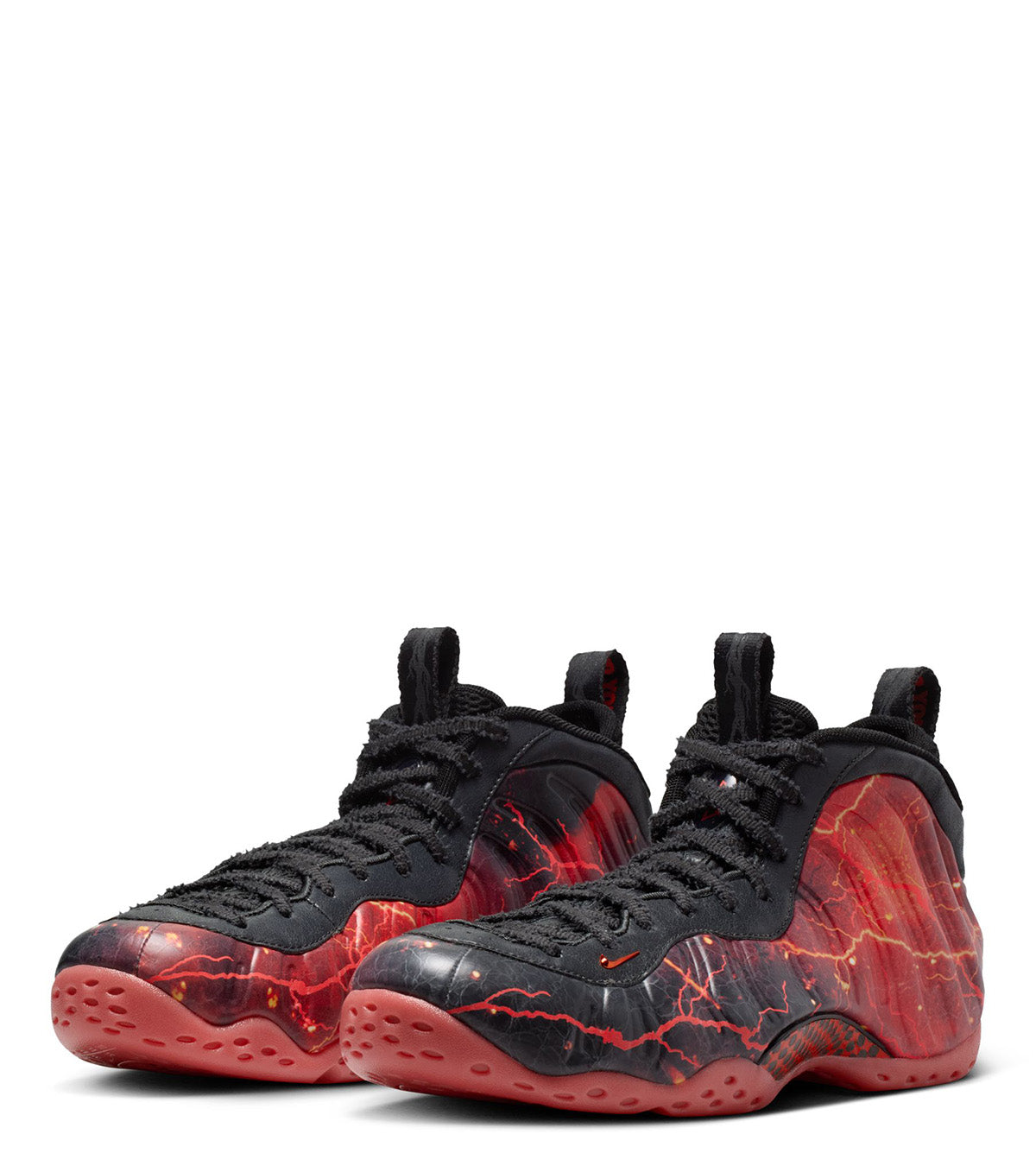 In collaboration with Netflix and their hit series Stranger Things. This special edition Foamposite features an all over red storm overlay on the shell upper, a soft leather lining on the lace system, fur covered laces on the front, upside metallic branding on the back, and finished with a crimson red outsole on the bottom.
