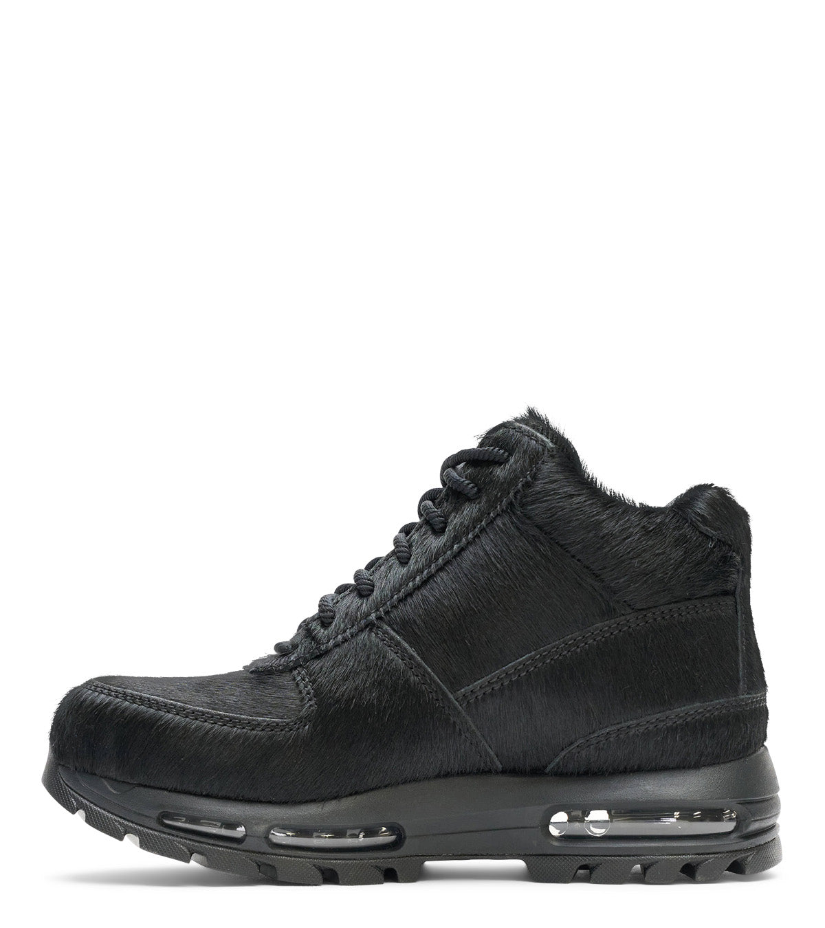 One of the most anticipated color ways to drop this year. This special Nike Air Max Goadome Boot features an all over detailed pony hair fabric upper and Nike Air Max cushioning, giving you a clean, classic look with lasting comfort. A waterproof finish and aggressive outsole pattern offer durability indoors and out.