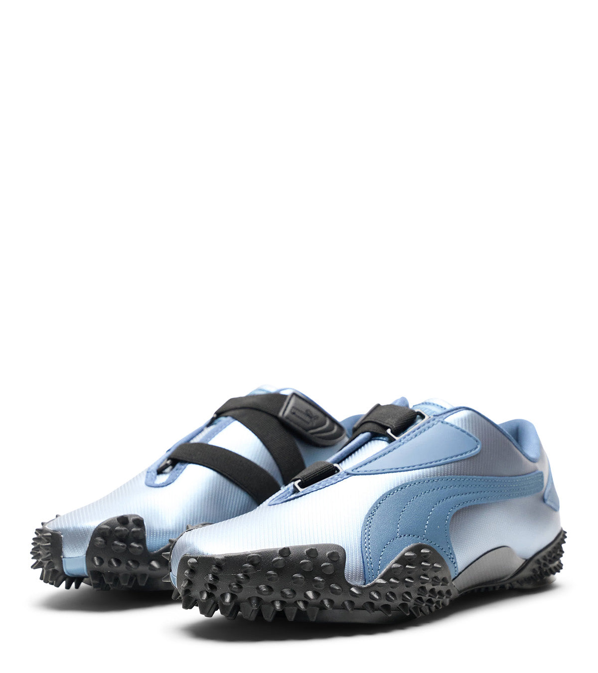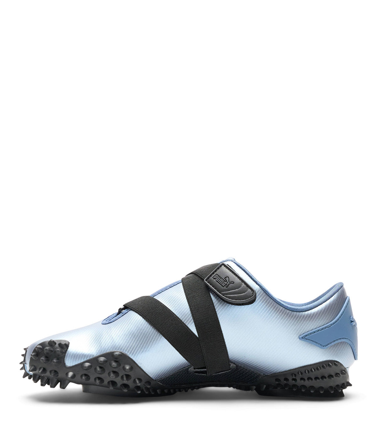 Taking inspiration from early slim track running silhouettes and updating it with today's technology and materials. This special iteration features a metallic like leather textile overlay with soft leather inserts on the shoe lace area and PUMA branding stripe, a velcro fastened lacing system, and finished with a unique spiked rubber outsole.