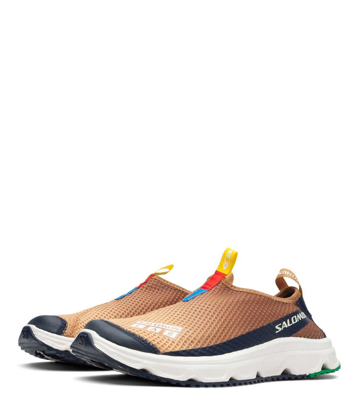 The perfect recovery slipper made from Salomon. This slip on silhouette features an all over soft and breathable mesh fabric upper with hits of Salomon branding all throughout, a sock liner that hugs your ankle, and finished with a soft foam midsole for the utmost comfort.