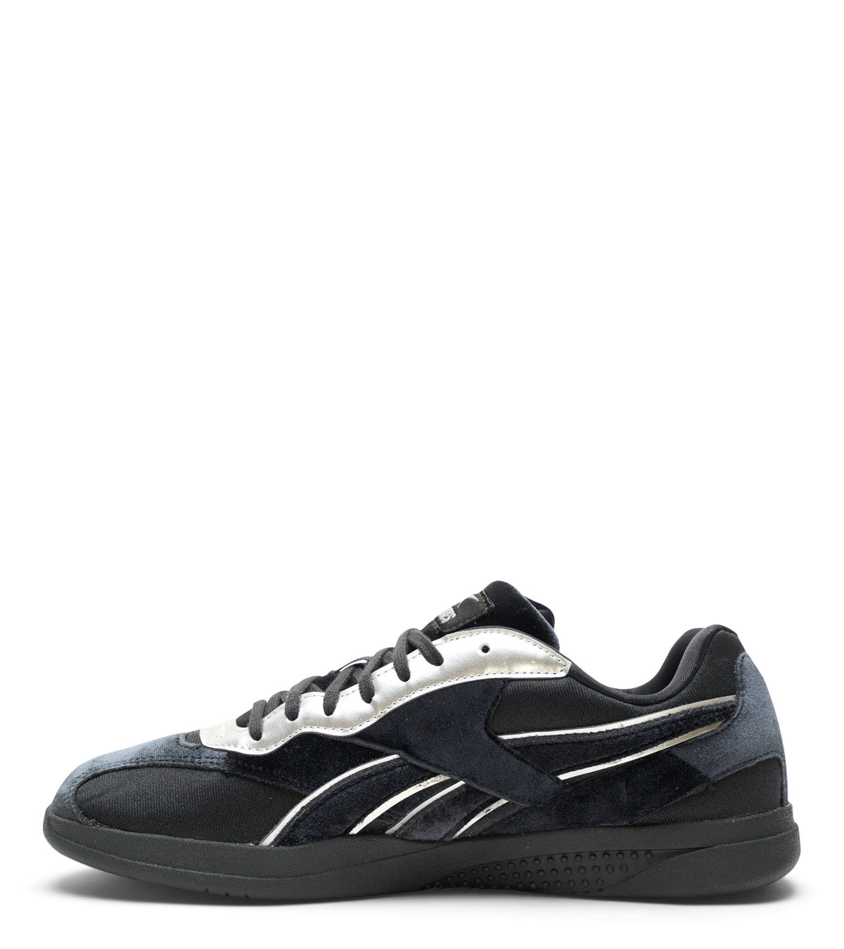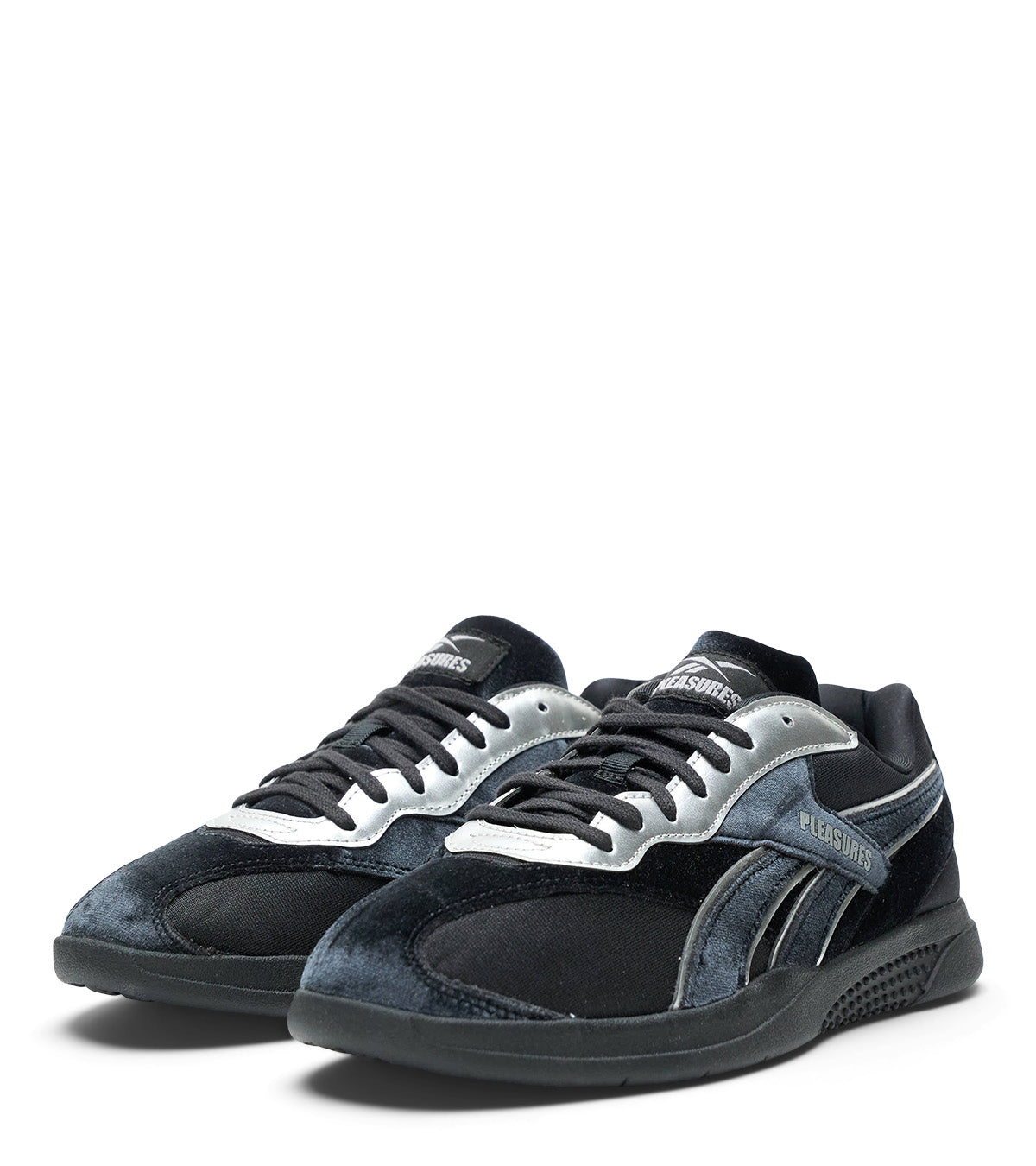 In collaboration with LA-based label 'Pleasures'. A modernized and futuristic update on the iconic low top silhouette from Reebok. Made from a soft velvet inserts on the upper that come together and make a layered effect alongside silver details, a Reebok stripe logo on the side, and finished with a durable rubber outsole for enhanced traction and comfort.