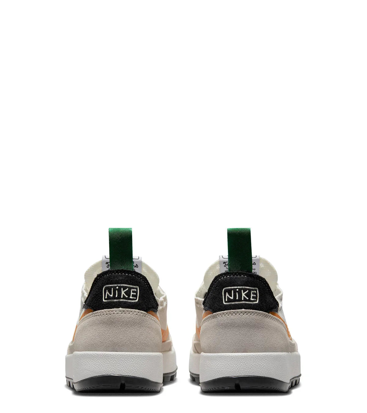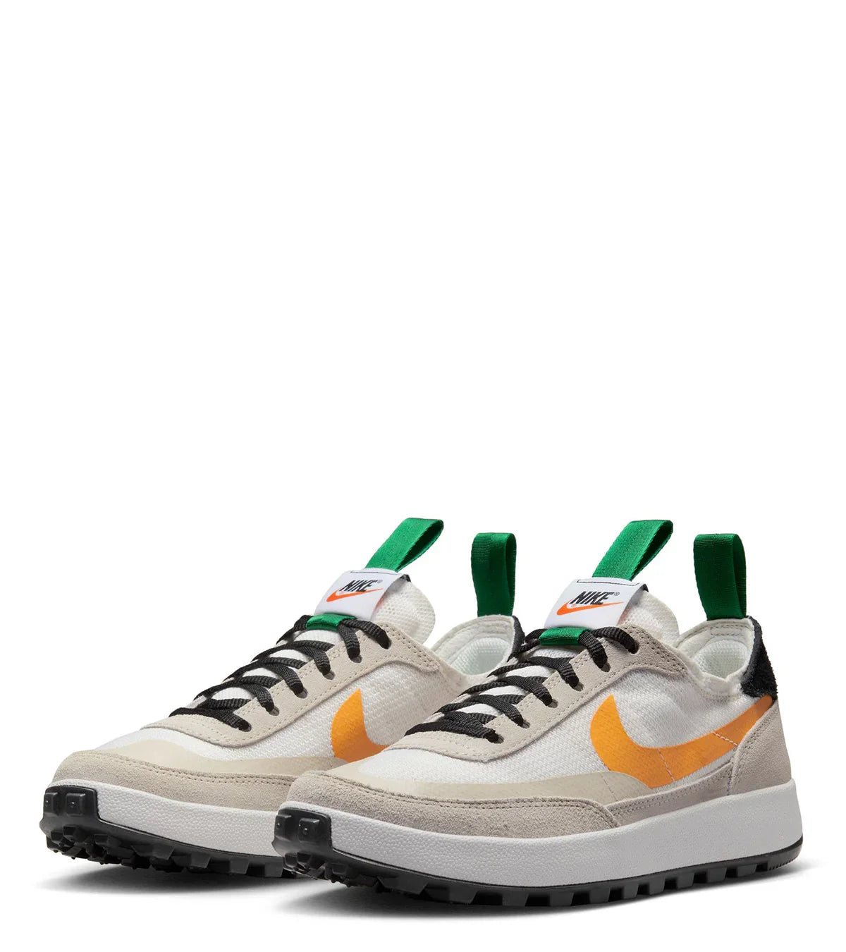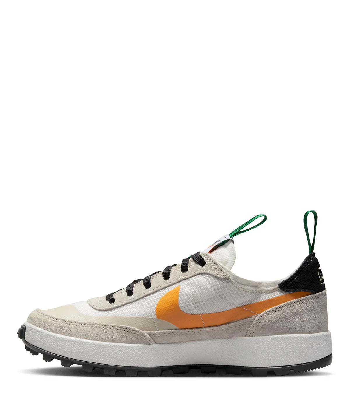 In collaboration with Artist Tom Sachs. This special silhouette features a soft and breathable double knitted mesh upper, a soft suede guard around the entire upper, a three piece molded midsole for the utmost comfort, green nylon straps on the top of the shoe, unique Nike branding, and finished with a waffle designed outsole on the bottom.
