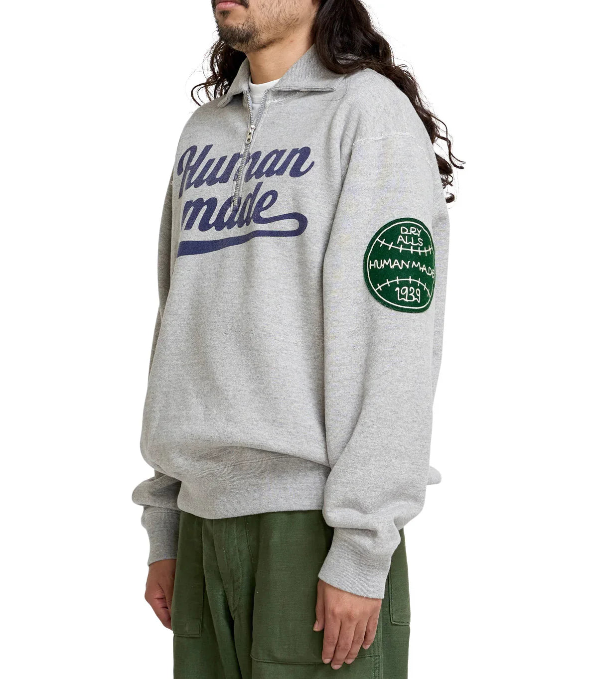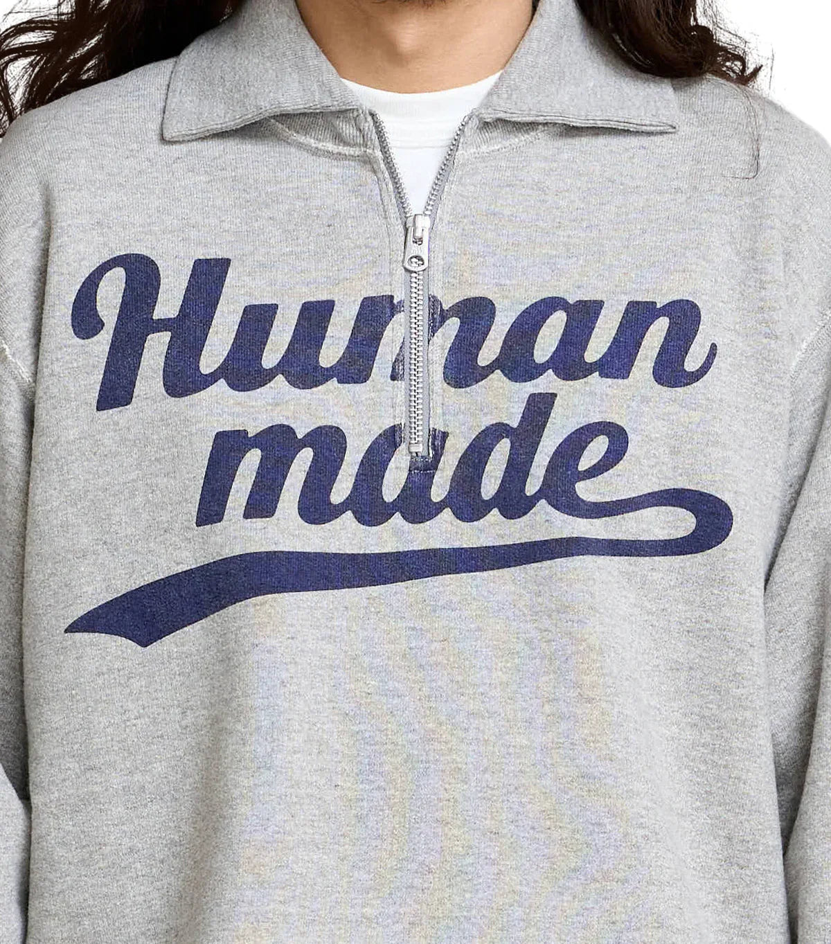 Made from a premium 100% cotton fabric, this sweatshirt features a half zip design on the front, a graphic printed onto the front and side, a small collar design by the neck, and finished with ribbed finishes on the bottom.