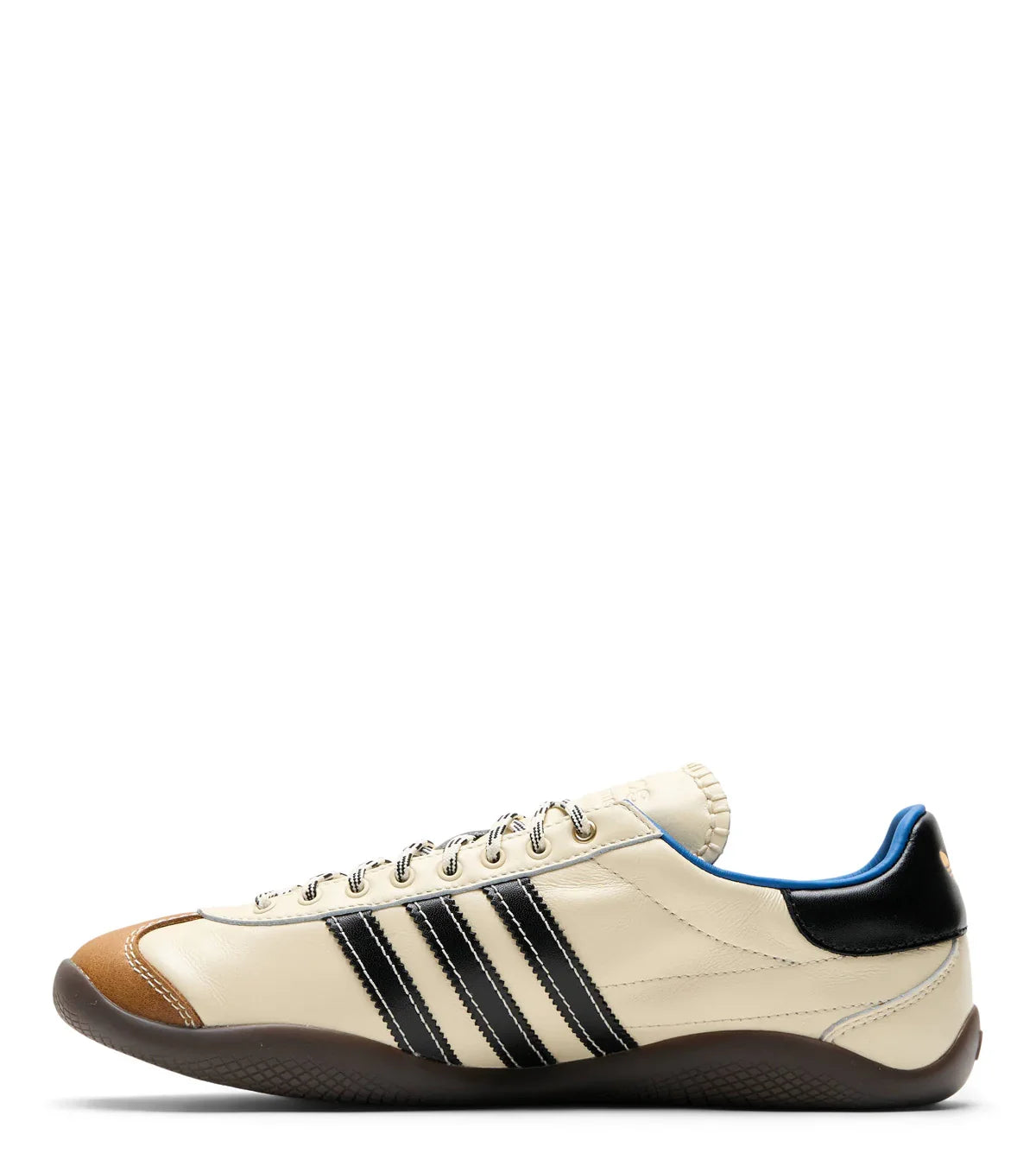 Made in collaboration with Designer Wales Bonner. This intricately designed pair features a soft vintage leather construction on the upper, gold embossed logo detail on the side, contrast stitched details on the 3 stripes and on the tongue, and finished with a soft rubber outsole on the bottom.