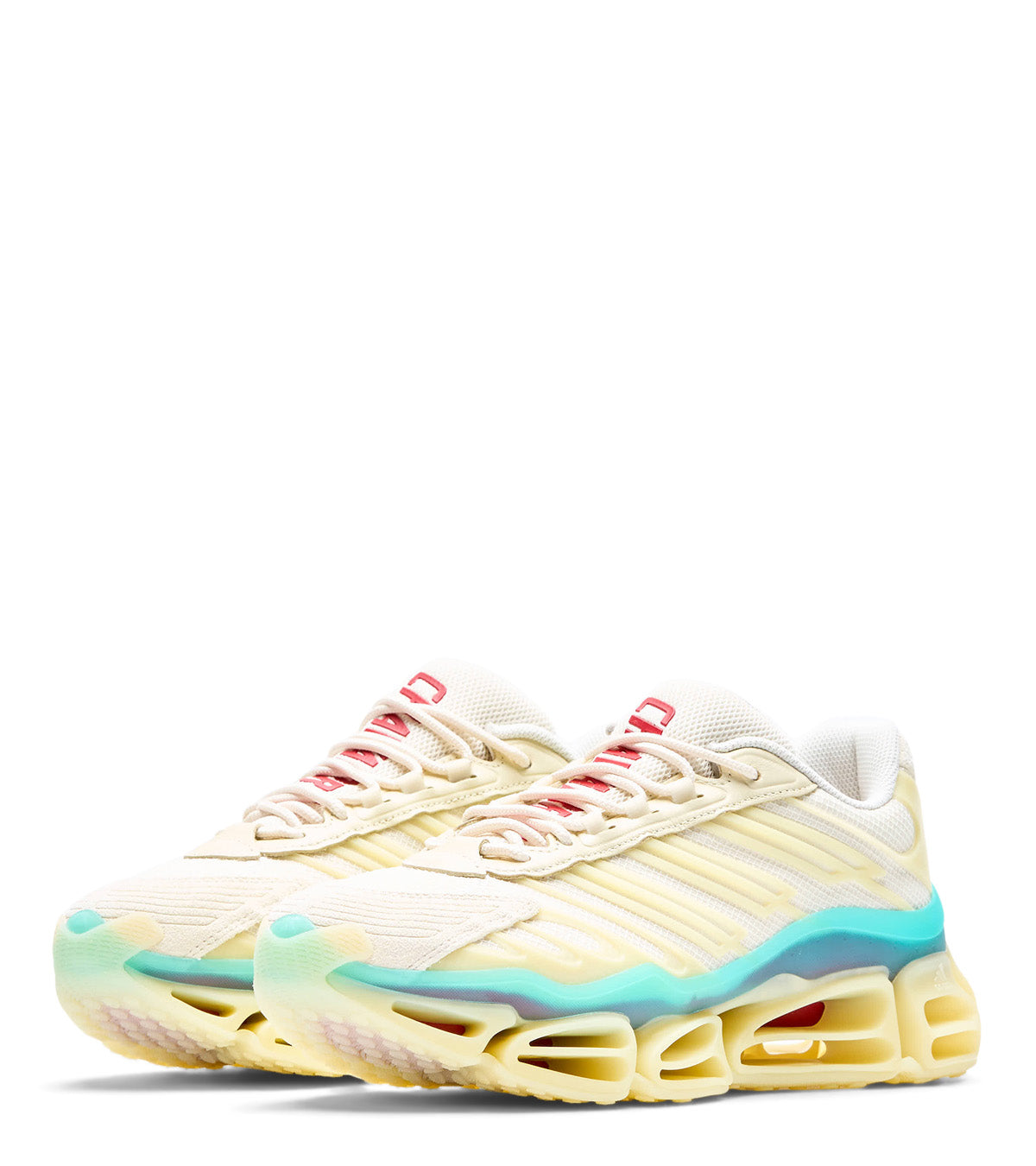 Part of the SS26 Adidas x Willy Chavarria collection. This special reiteration of the Megaride silhouette features premium suede panels atop of a soft and breathable mesh upper base, a springy bottom detail for the utmost comfort and finished with a matte finished 'Chavarria' logo on the tongue.