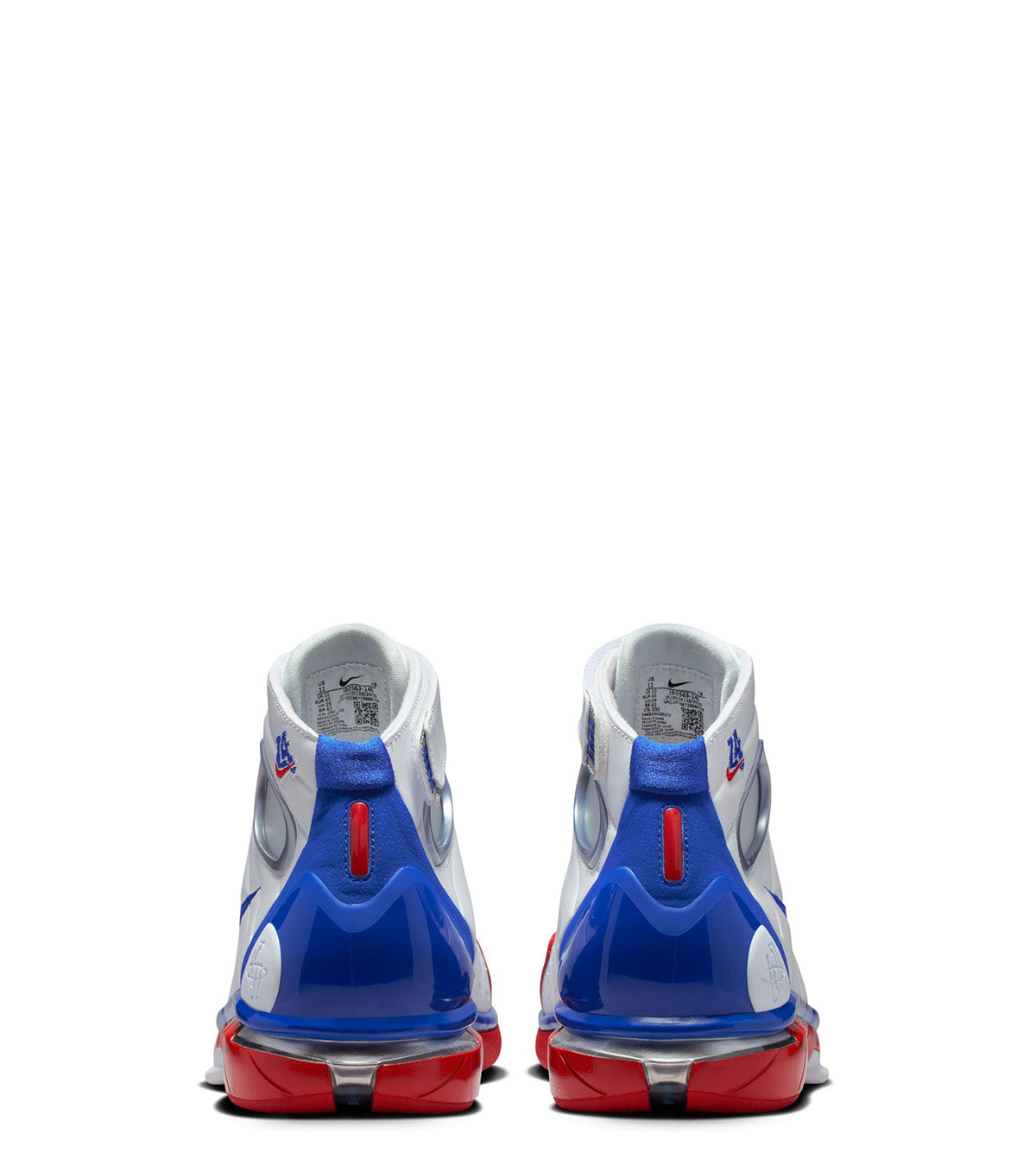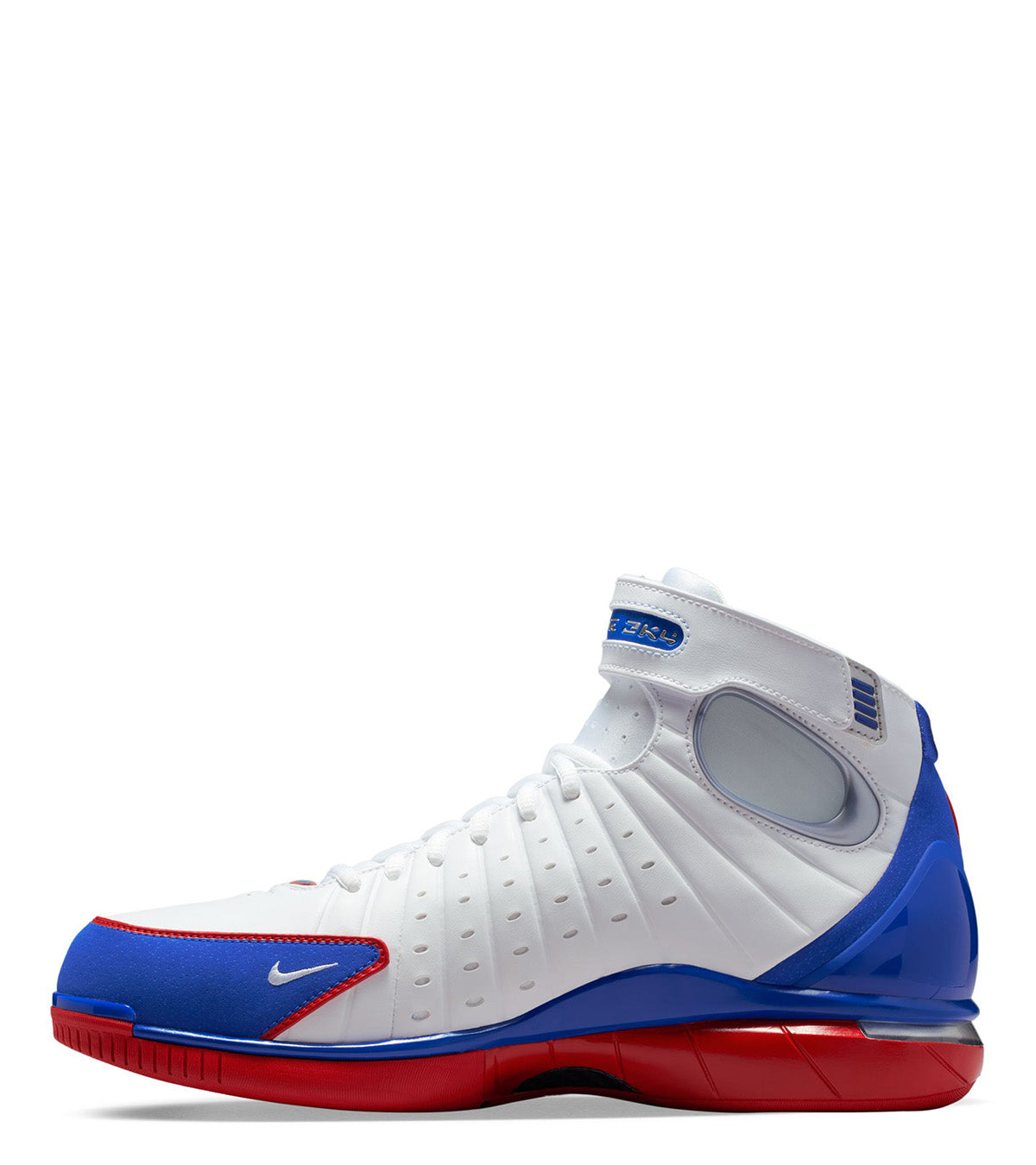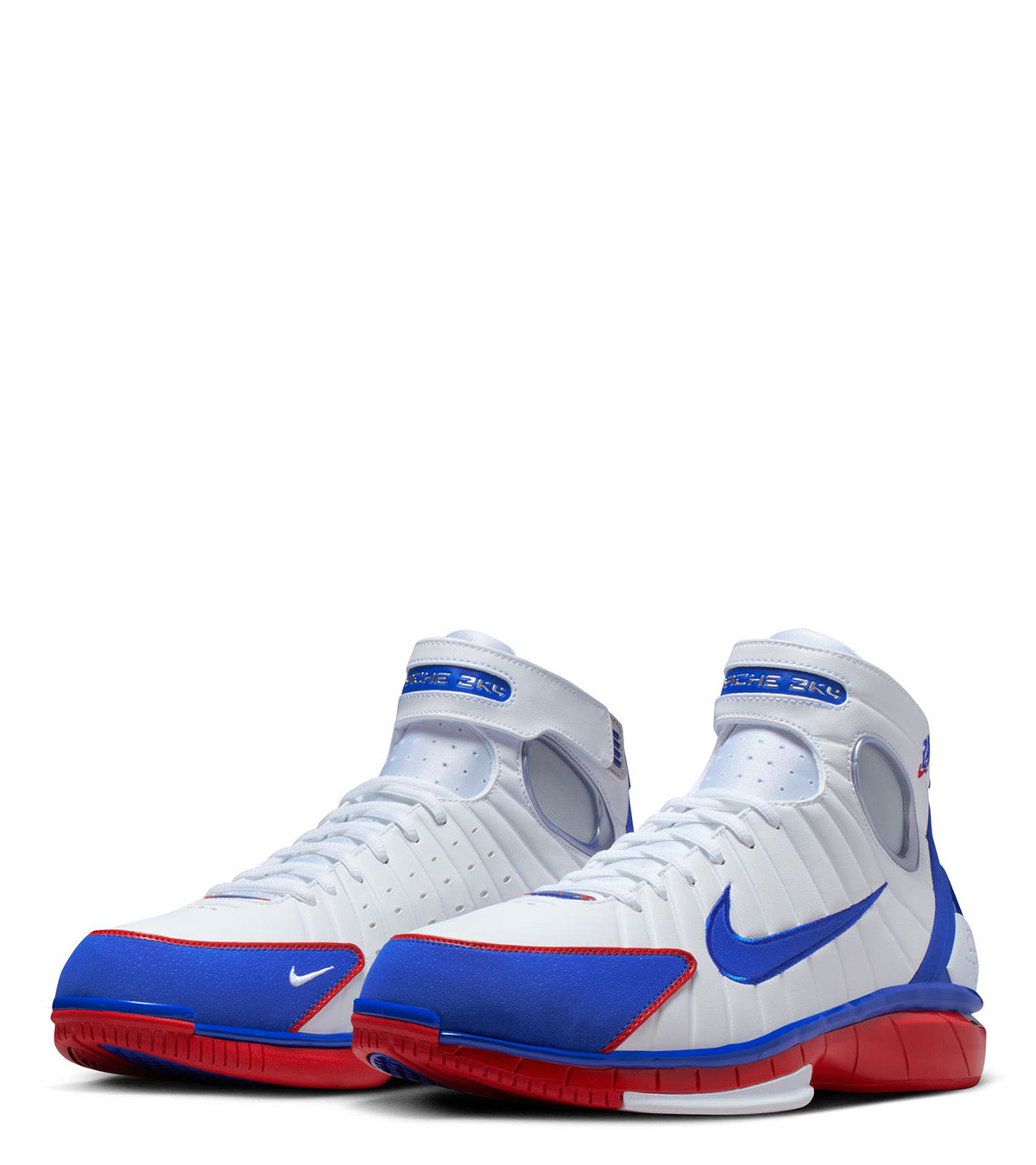 Originally released in '04, this special pair is back. this intricately detailed pair features an all over red, white, and blue soft leather overlay with hits of a soft rubber guard on the front and back, a mesh hole on the ankle area, and finished with a full length Air unit outsole for the utmost comfort.