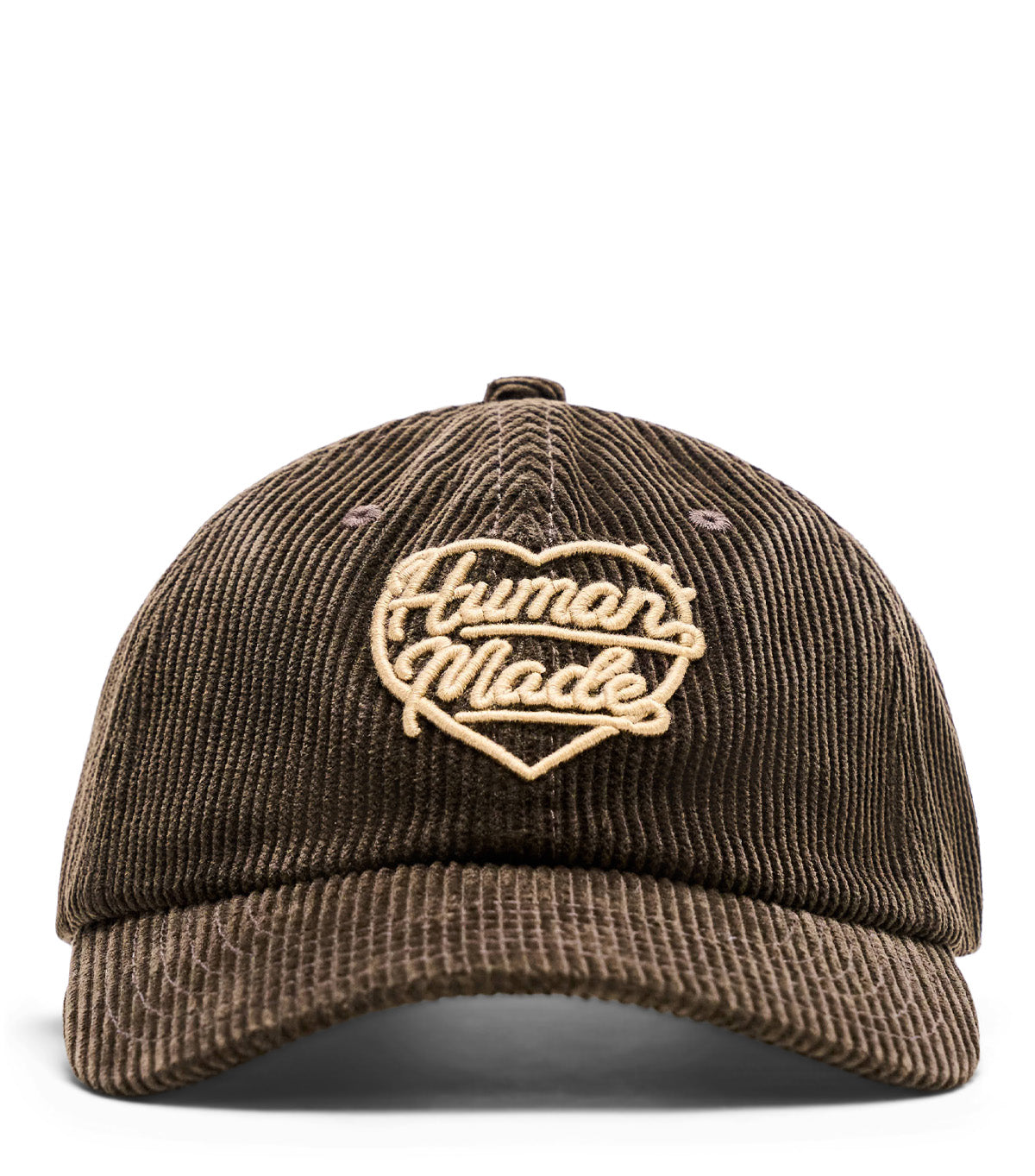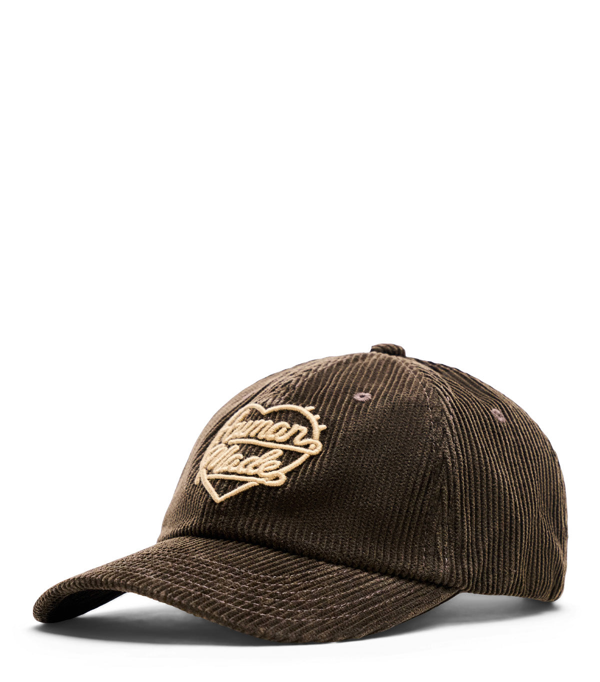 Classic 6 paneled construction cap made from a soft cotton corduroy design, Features an embroidered Human Made heart logo on the front, and finished with an adjustable strap on the back