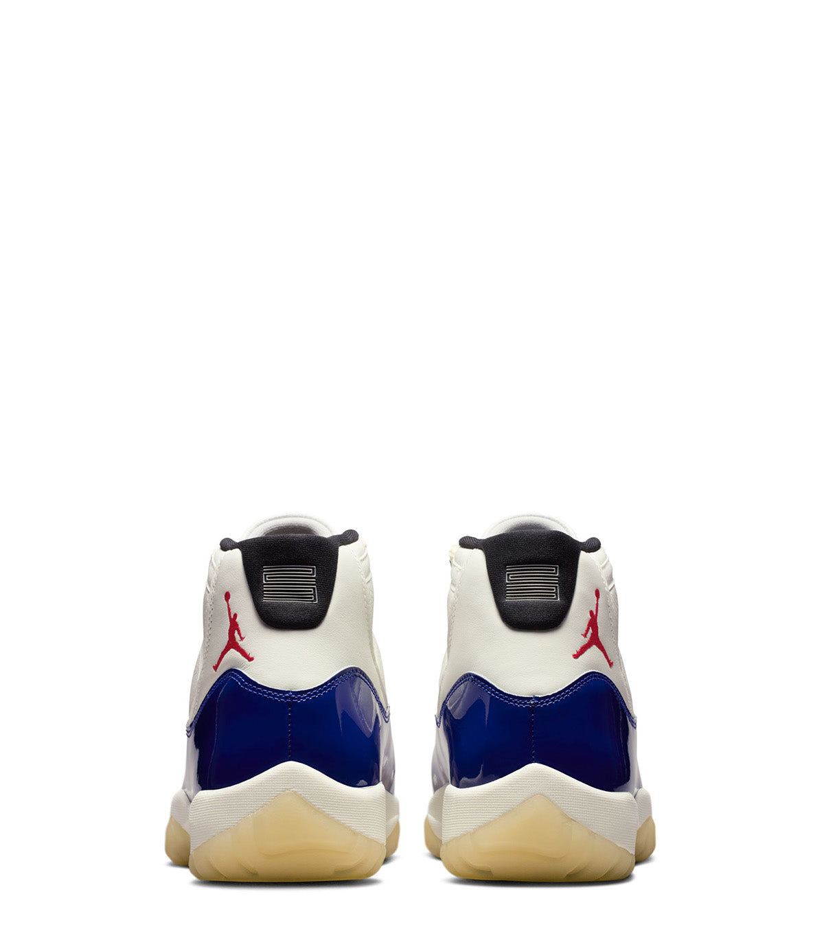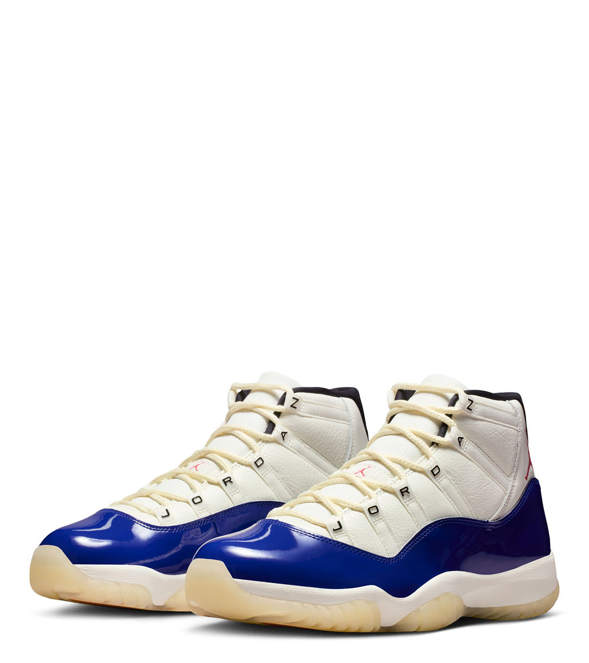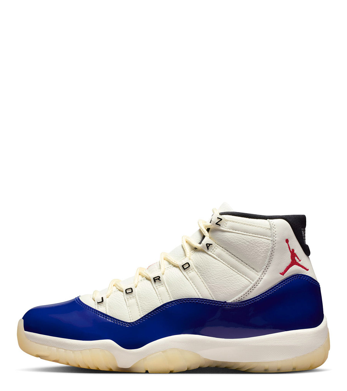 The classic Jordan 11 silhouette gets an all new color way added to the extensive collection. A soft cream colored tumble leather constructs the upper with a royal blue patent leather mid stripe compliments the upper layer. Finished with a red Jumpman logo on both heels and a cream colored translucent outsole.