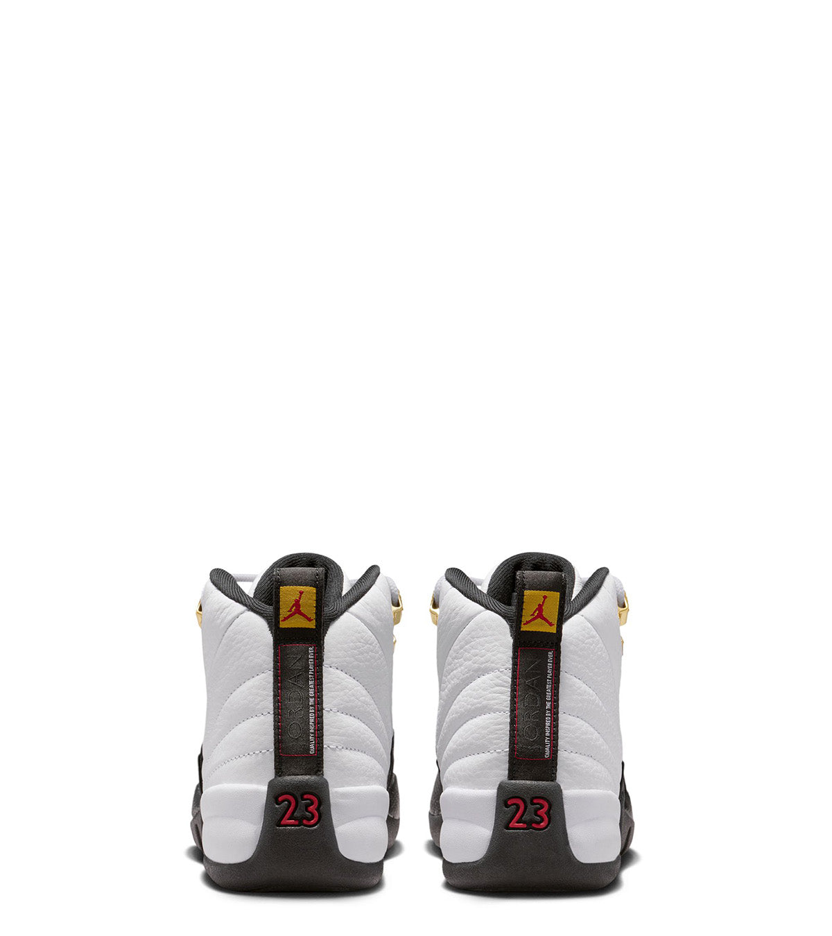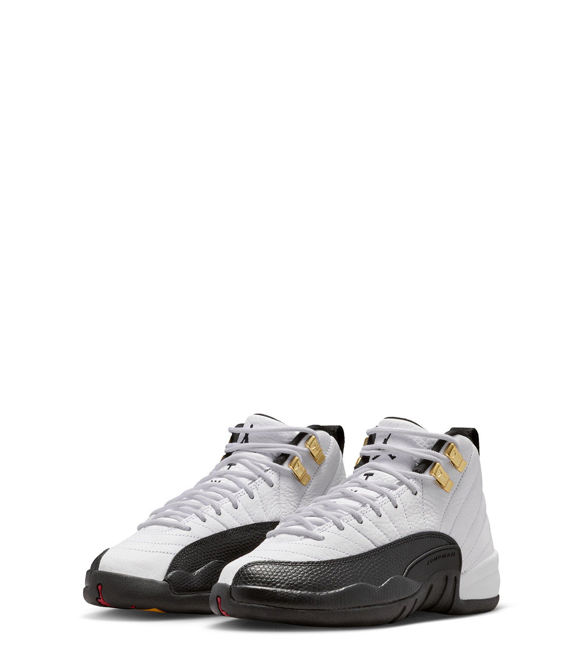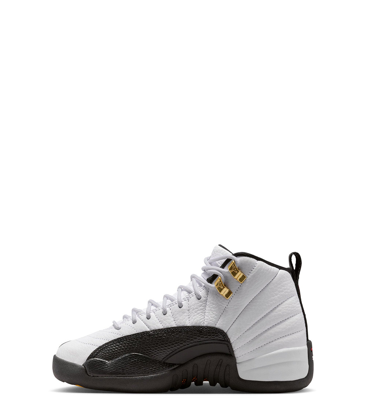 For the kids. One of the most iconic color ways in the Jordan 12 lineup returns for the 2025 Holiday season. This classic White and Black color way is made from updated premium materials such as a soft White leather quilted design on the top overlay and a pebbled leather Black insert on the front guard. Finished with Gold accents on the laces and Jordan branding on the back tab.