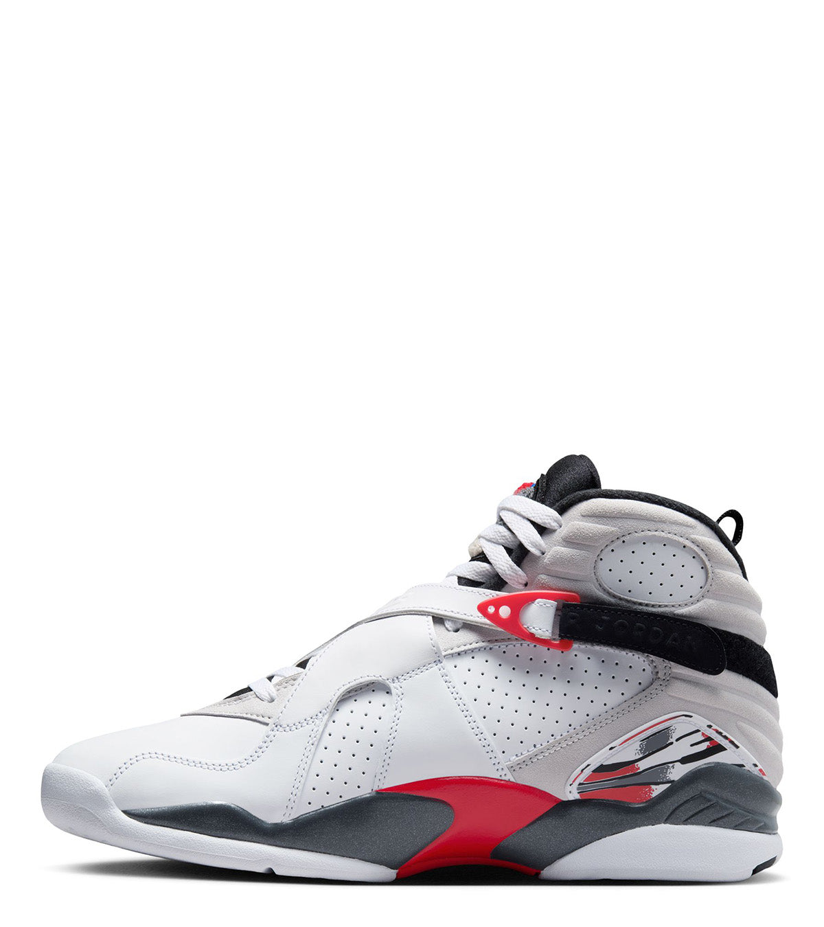 A classic color way returns. Dubbed the 'Bugs Bunny' for the usage of whites and grey on soft leather upper, and splashed with hits of black and red on the front strip and mid foot.