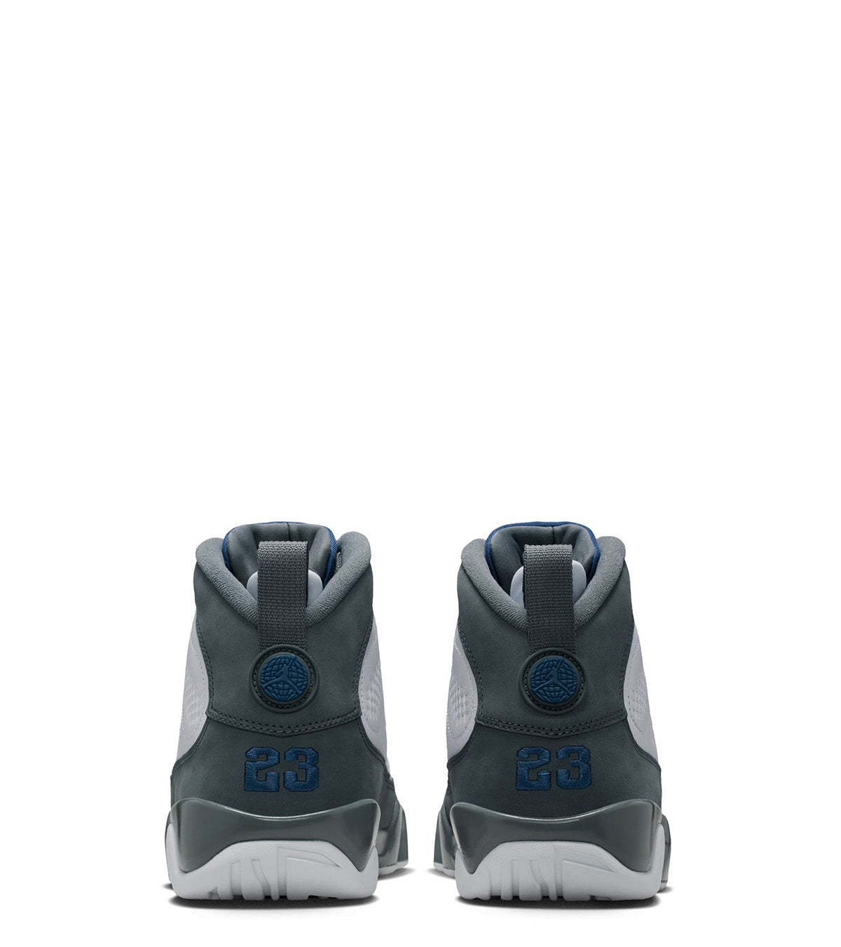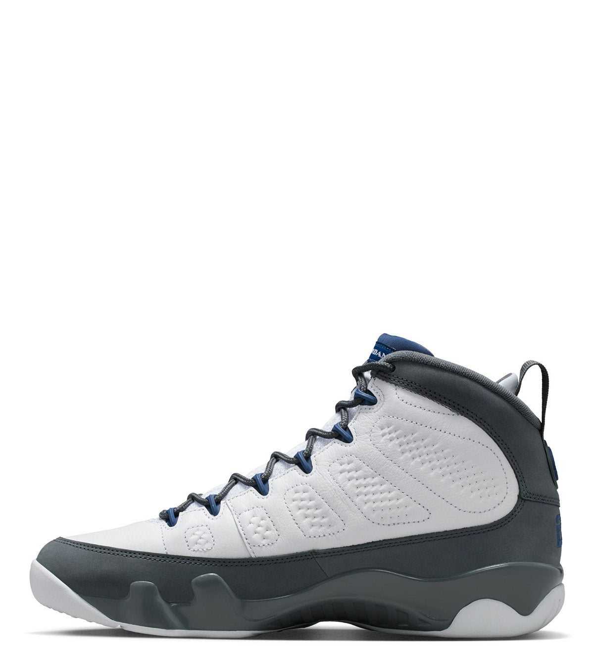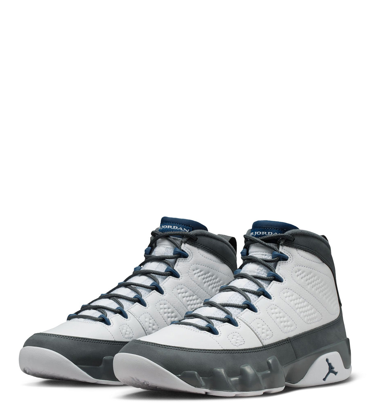 Back from the first time since '02, this all time classic returns. Made with a soft leather on the upper with a soft suede stripe running from the mid foot to collar, blue accents on the lace tips and heel loop, and finished with blue accents on the jump man and back heel.