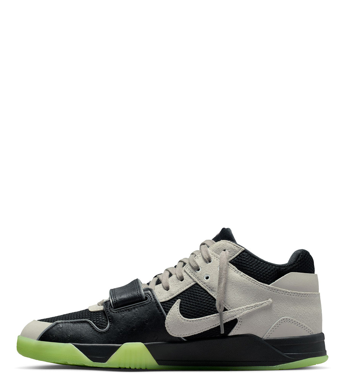 A custom color way done by Travis Scott's DJ 'Chase B'. Made from premium materials such as a soft suede all around the upper with hits of black on the forefront and on the front strap. Finished with a glow-in-the-dark outsole on the bottom.