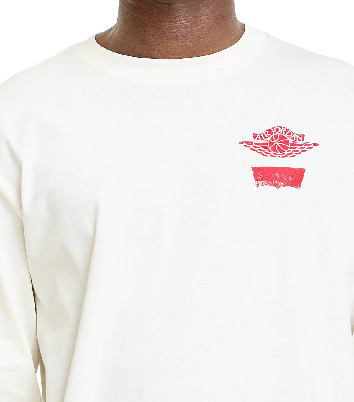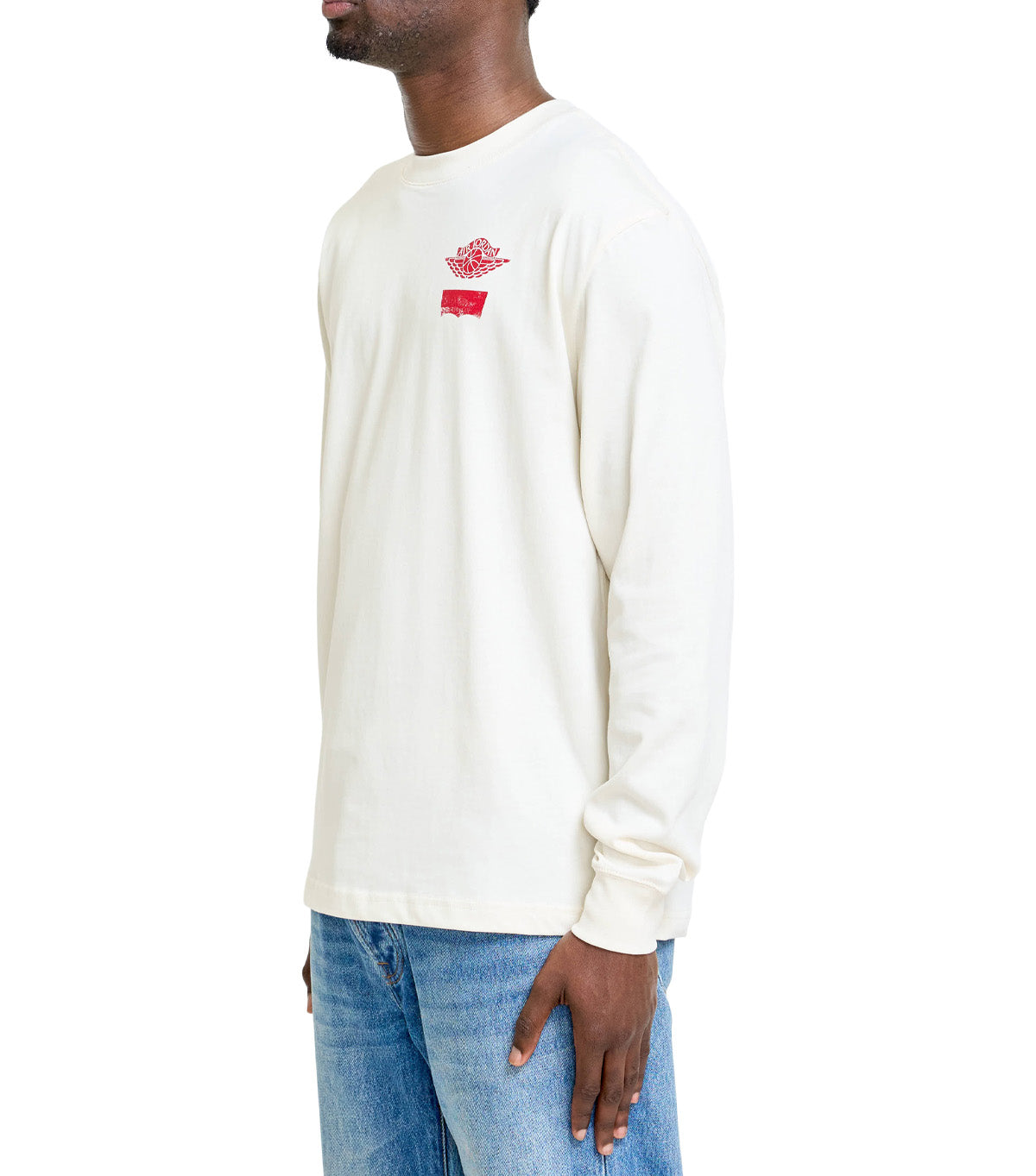 In collaboration with denim brand Levi's®, this special long sleeve t-shirt silhouette features unique printed graphic branding on the front and on the back depicting logos from both brands.