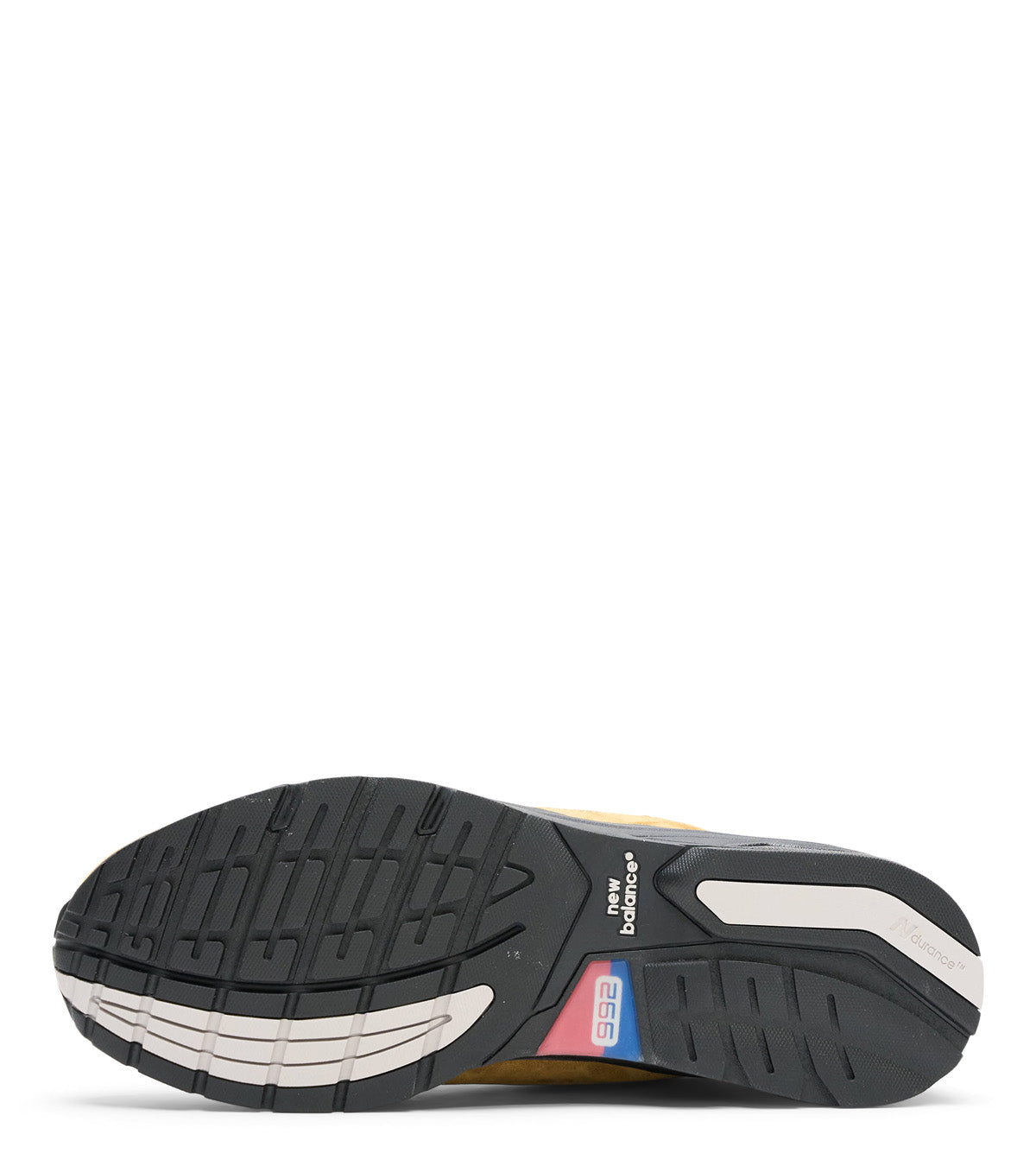 In collaboration with New York born and raised artist 'Action Bronson', this special iteration of the 992 features a unique color blocking overlay in a multitude of hues such as a solid brown/black base with hits of an orange and blue detailing. Made domestically in the USA from a premium pigskin suede fabric on the upper with hits of a mesh lining for the utmost breathability, a full Abzorb technology all on the footbed for the utmost comfortably.