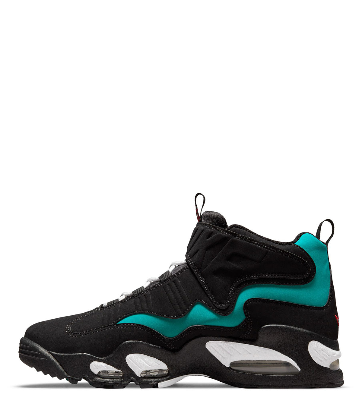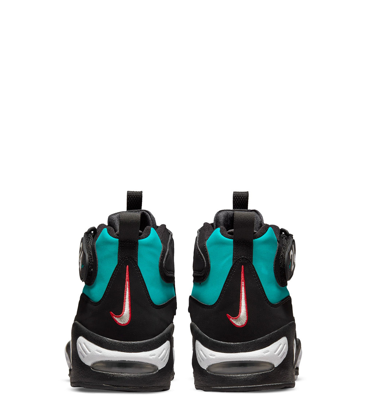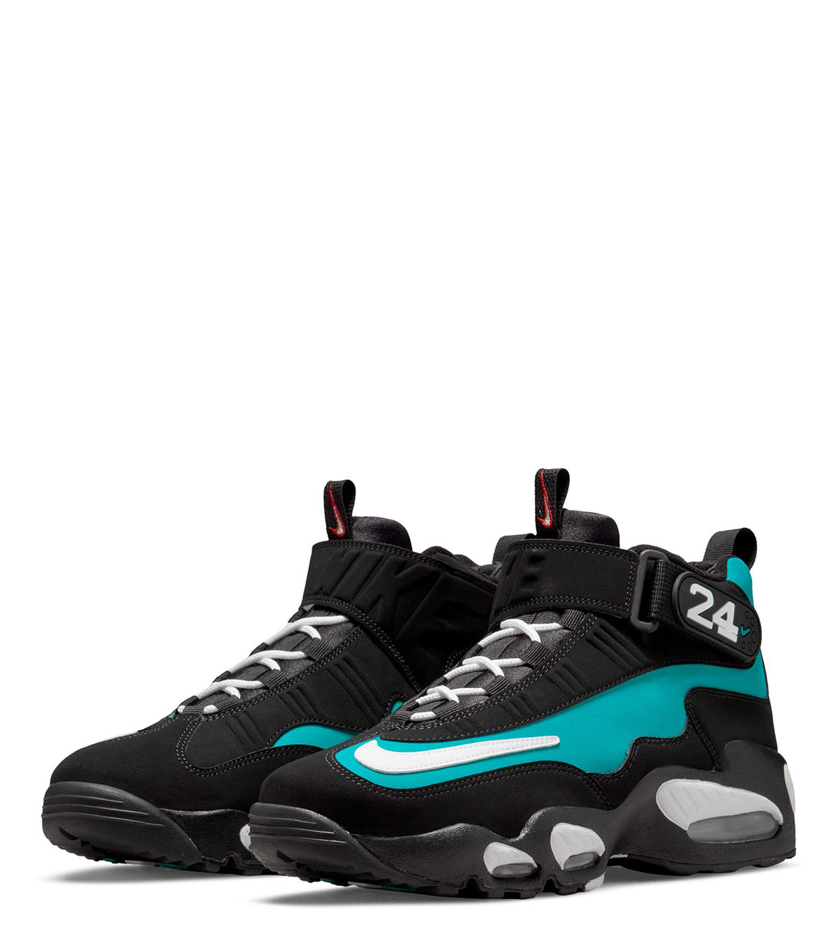 Celebrating the legendary silhouettes 20th anniversary, the iconic Black and Freshwater colorway returns. Made with a soft neoprene fabric on the upper, a full length Air unit on the bottom for the utmost comfort, 24 detailing on the front strap, and finished with Nike braiding on the front and back.