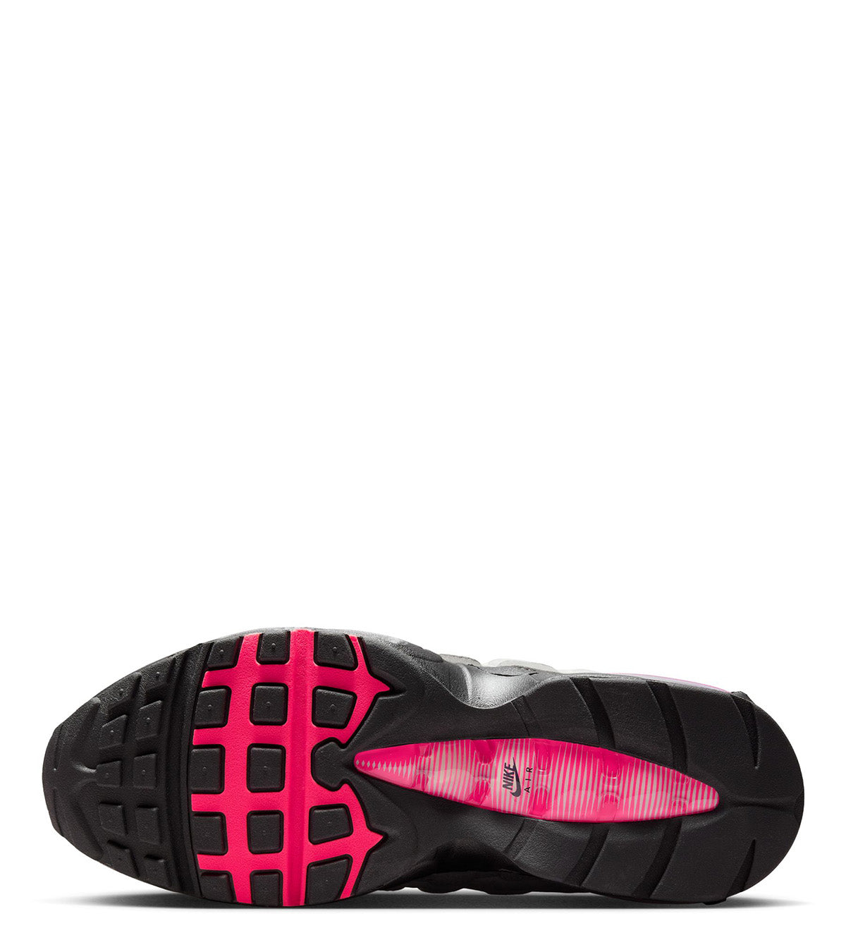 The iconic silhouette returns in their original 1995 silhouette that included the big bubble design. Features the iconic grey gradient panels finished with solar red detailing on the lace loops, Swoosh logo on the back, and finished with a solar red air bubble on the bottom.