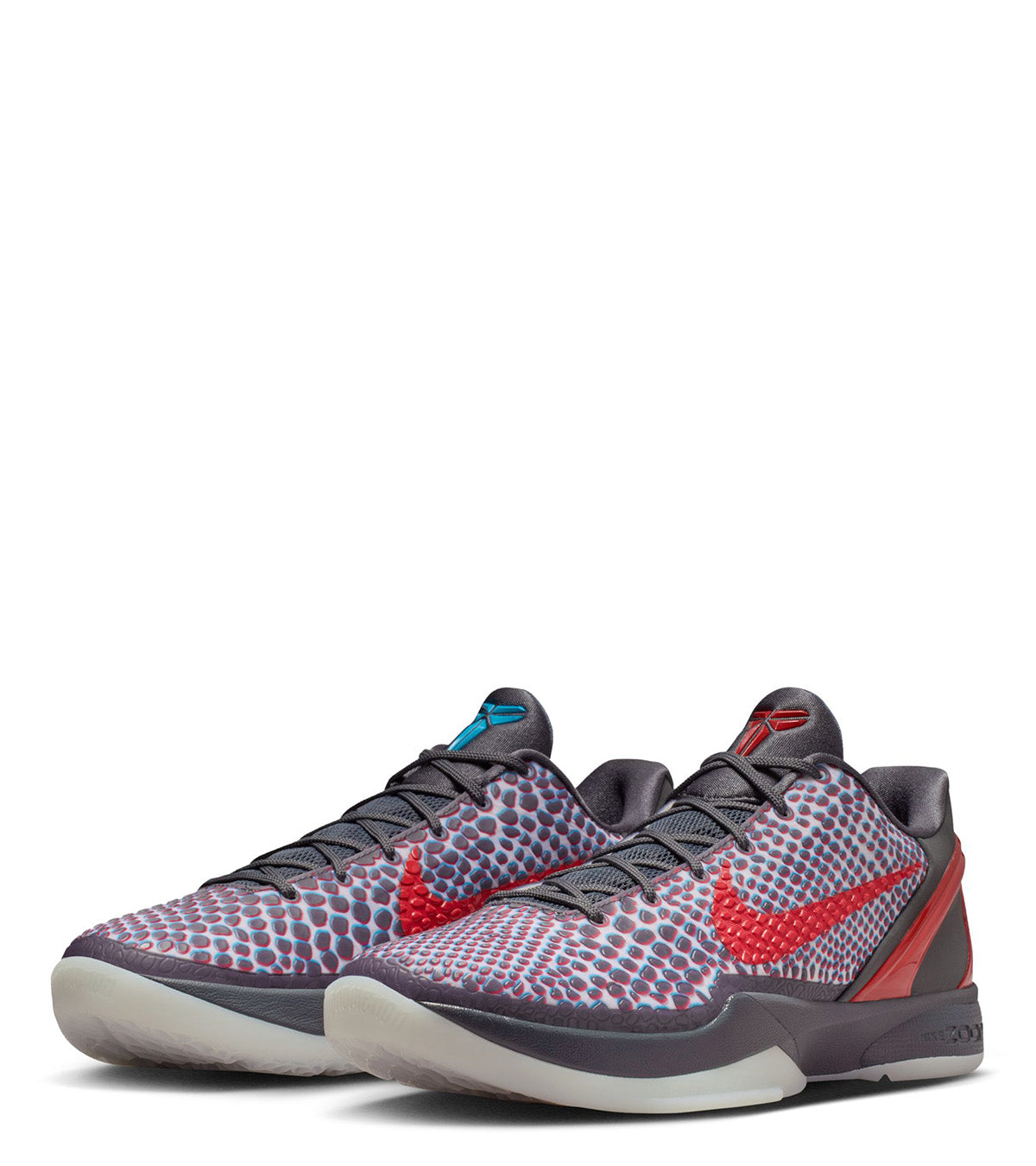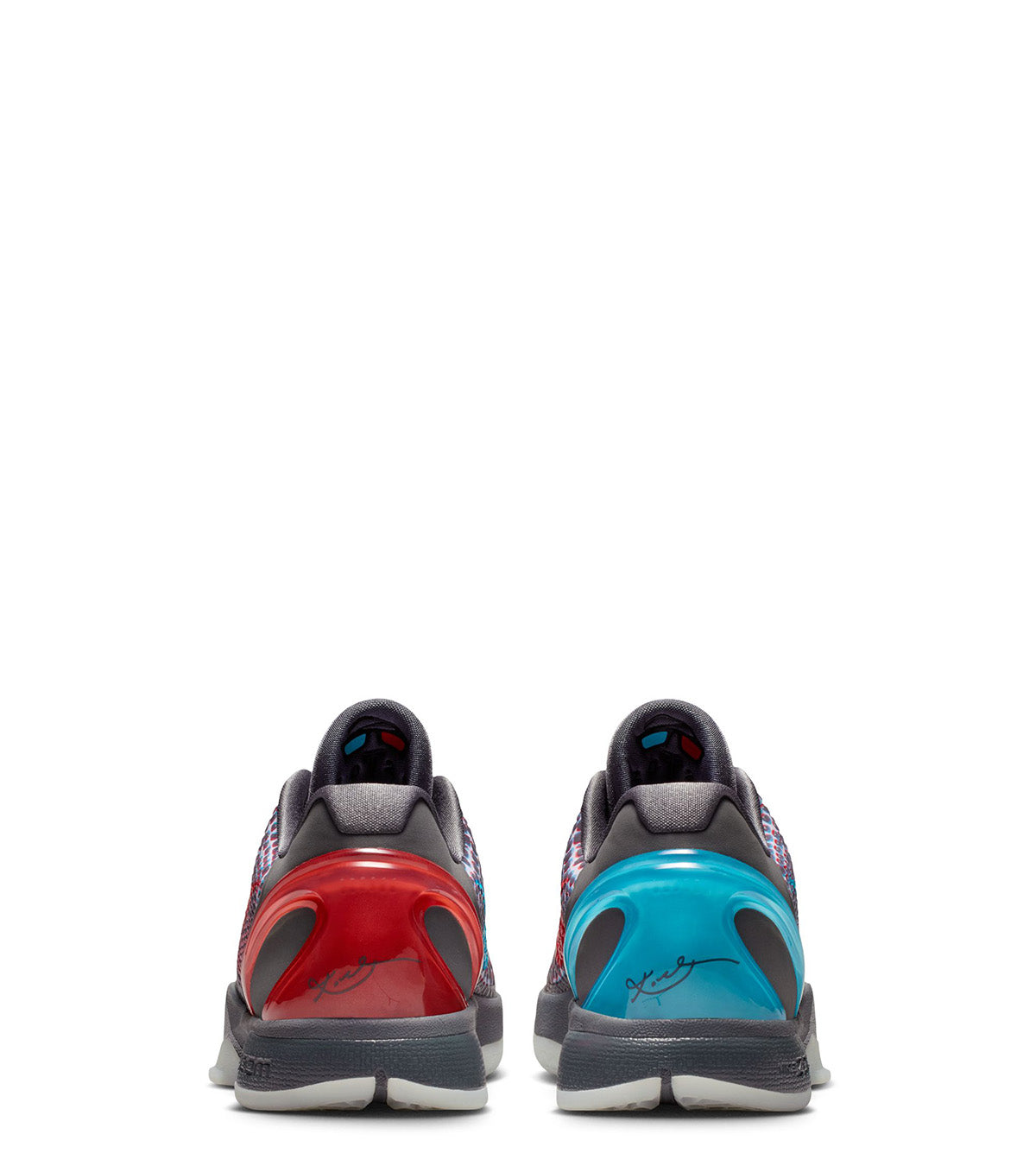 15 years after its debut, this cult classic color way of the Kobe VI returns. Featuring a multi colored 3D color way on the snakeskin upper, mismatch colored Swooshes on both shoes, blue and red heel caps on both shoes, and finished with a translucent white outsole on the bottom.