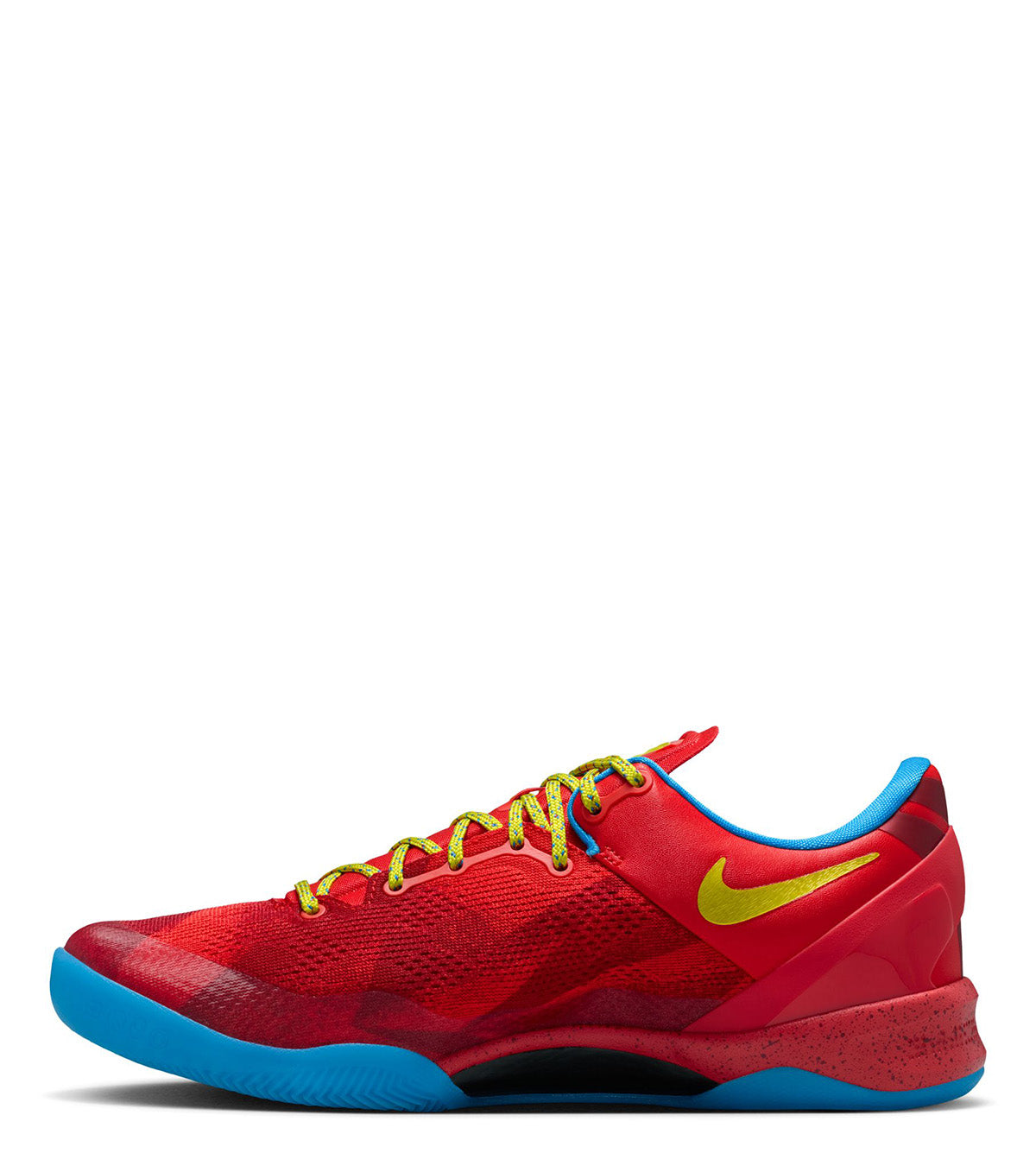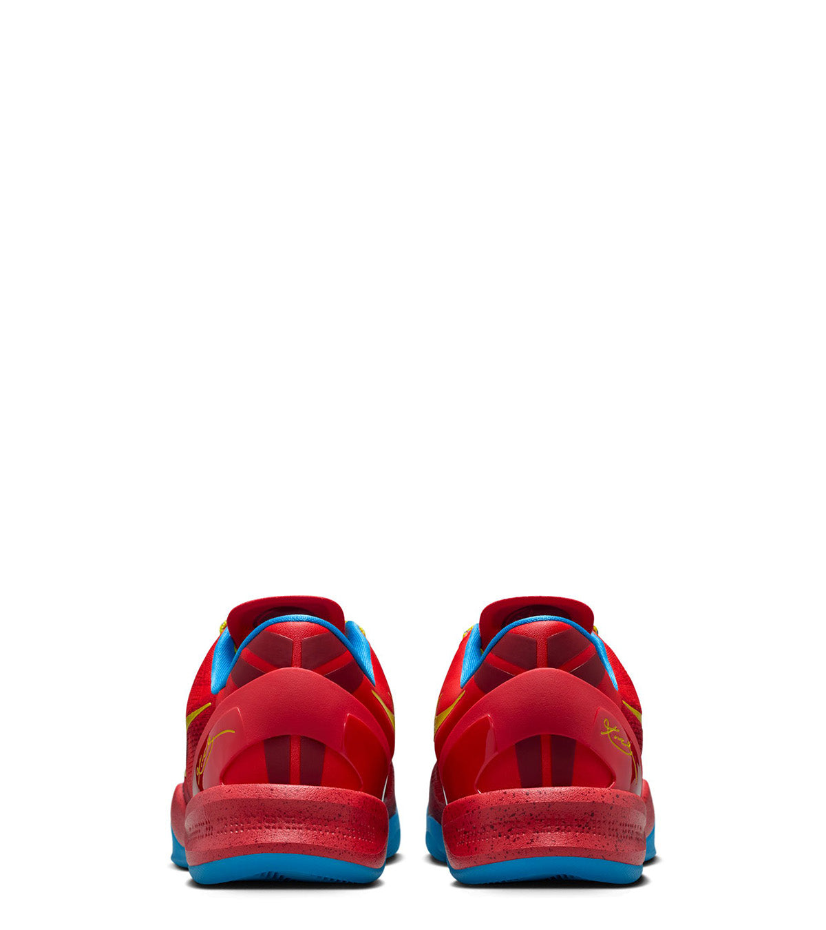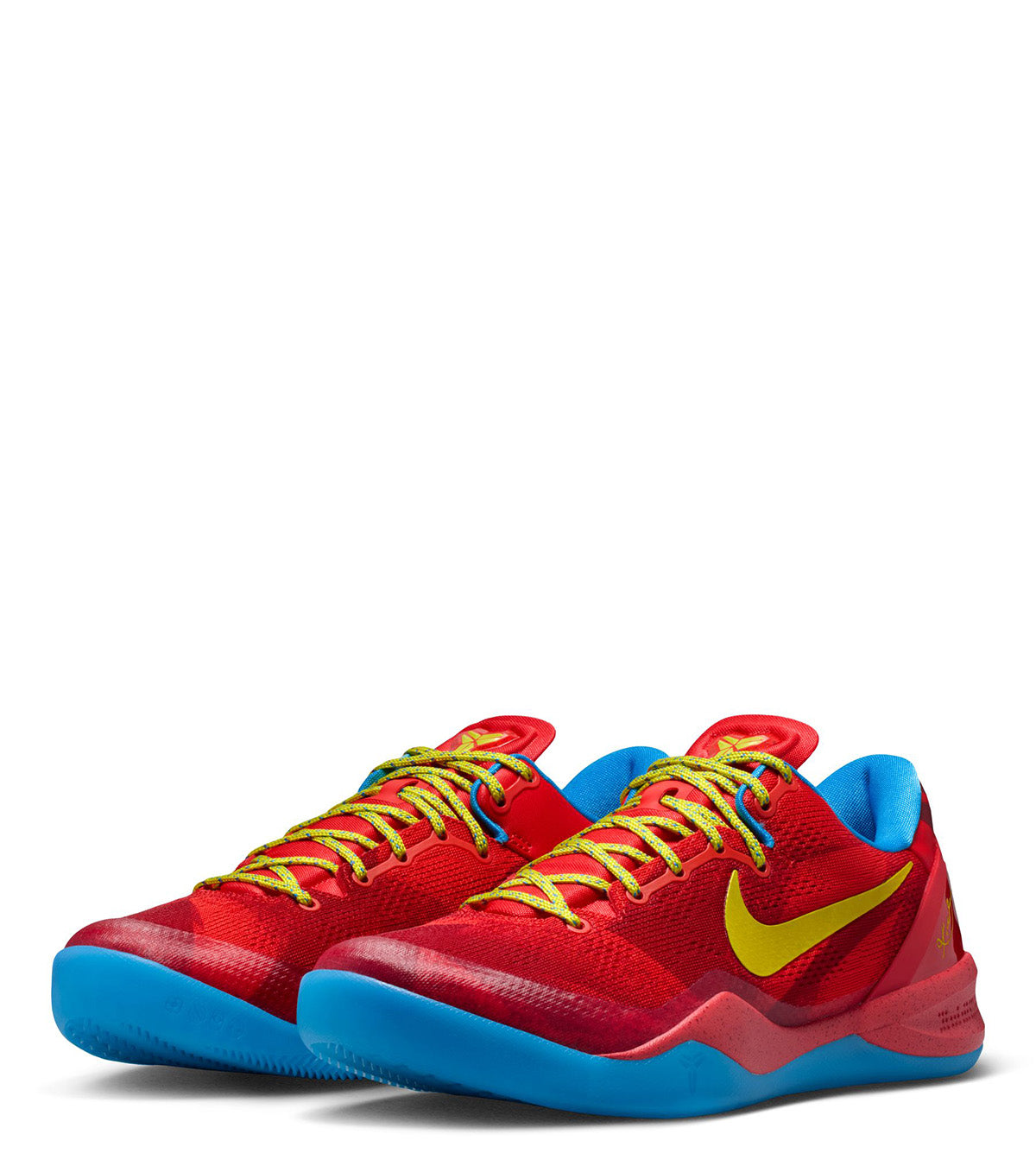 In celebration for the Year of the Horse, this special Kobe 8 silhouette features an all over bright red mesh upper that molds to your foot, soft blue cushioning on the inside of the shoe, a blue traditional herringbone traction outsole on the bottom, and finished with gold accents on the swoosh, signature on the side, and laces.