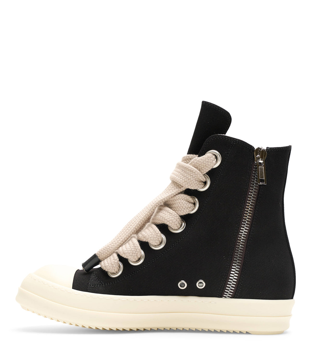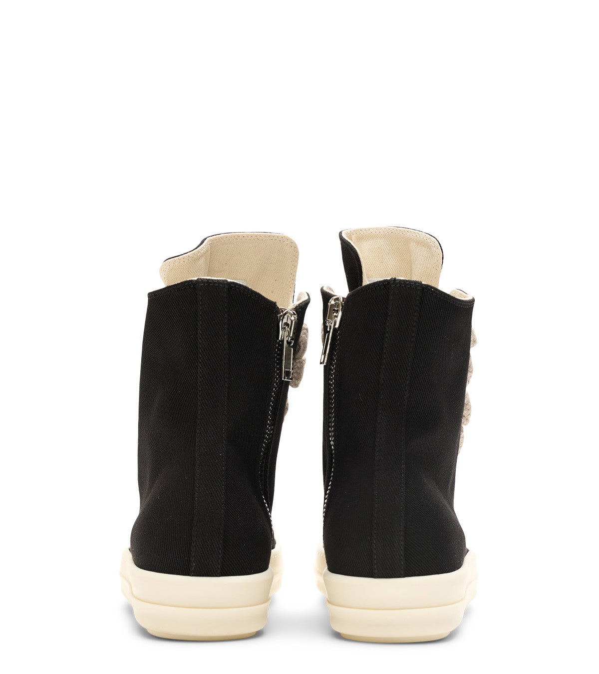 One of the most popular silhouettes from the DRKSHDW footwear family. Made with a full length canvas fabric on the upper, a soft rubber midsole with a rubber toe guard on the front, a ridged outsole on the bottom, a metallic zipper on the side for easy access, and finished with a unique jumbo lace design on the front.