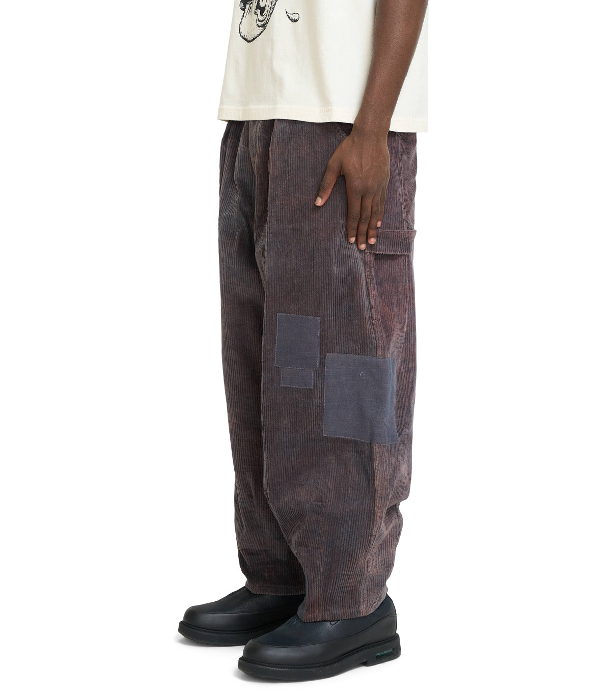 Inspired by vintage workwear, these wide trousers are made from a 100% organic cotton corduroy fabric. Features organic cotton patchwork detailing all over, belt loops, a hammer loop on the side, a tapered hem, two front pockets, and finished with a metallic zip fly closure.